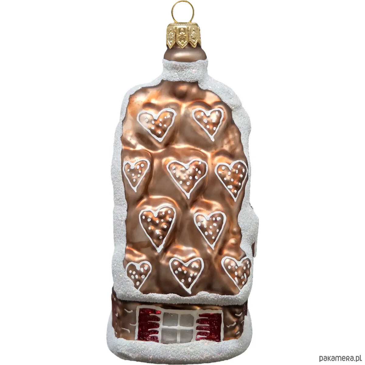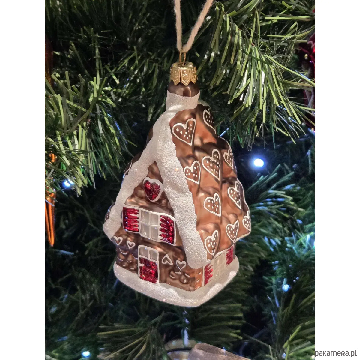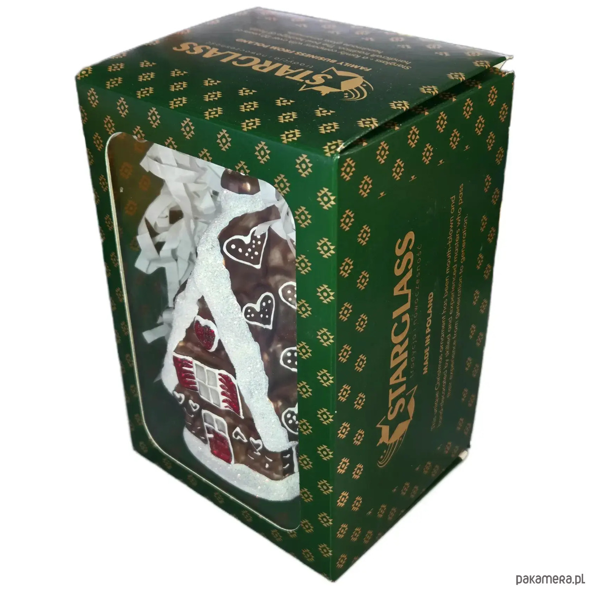 Szklana Bombka Ręcznie Malowana Zimowy Domek z Brązowym dachem