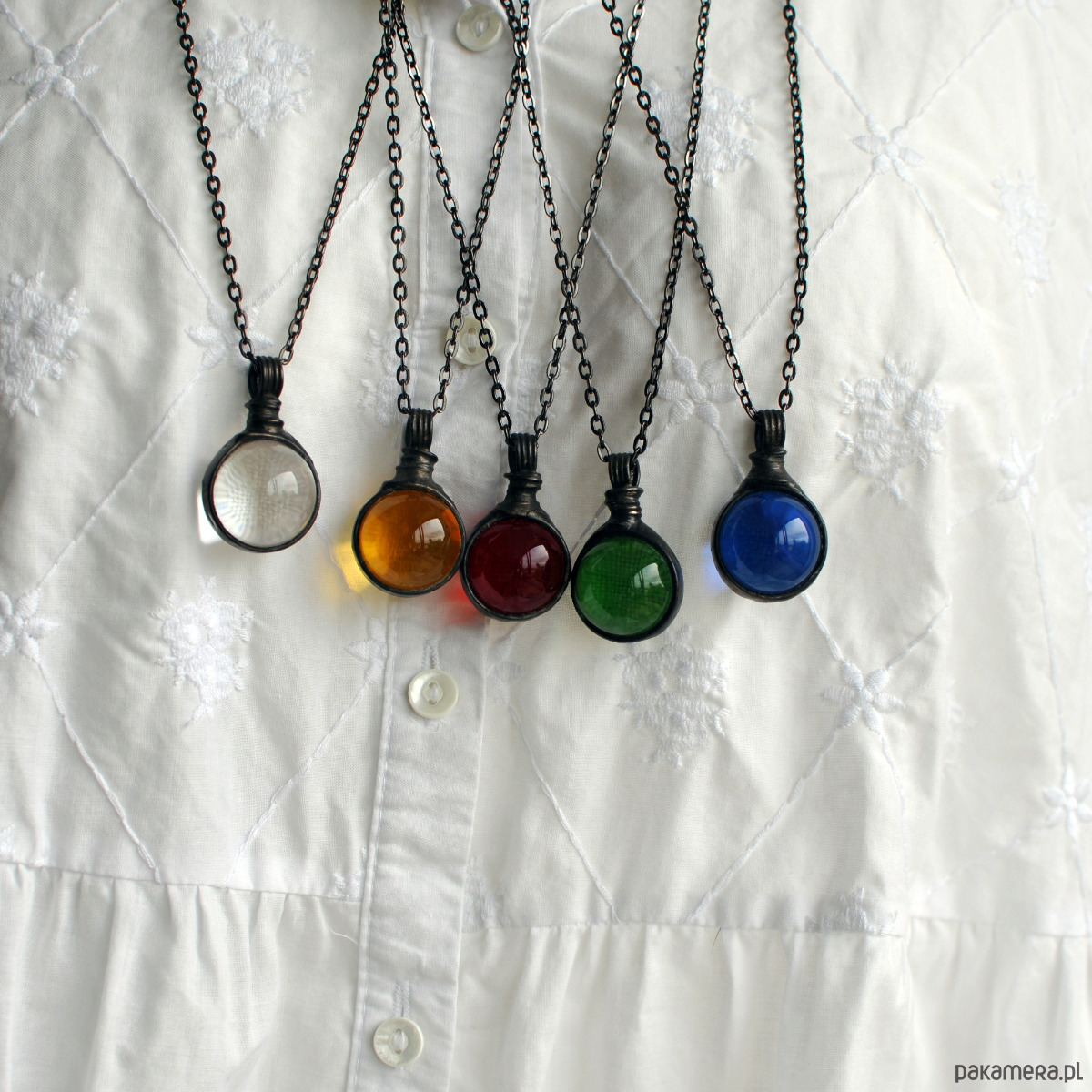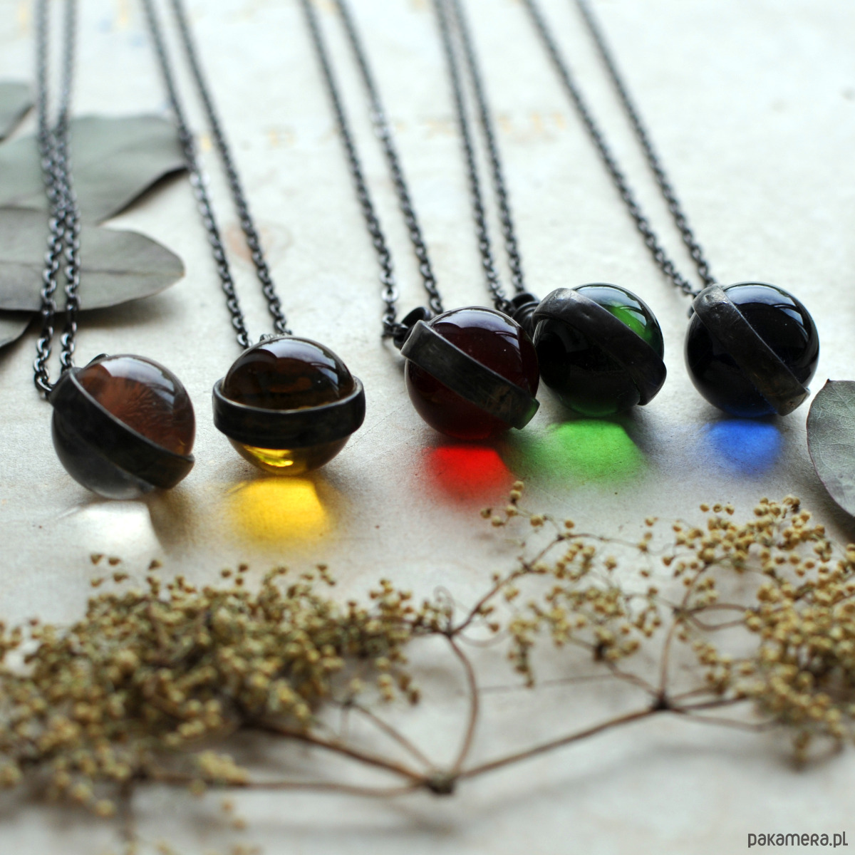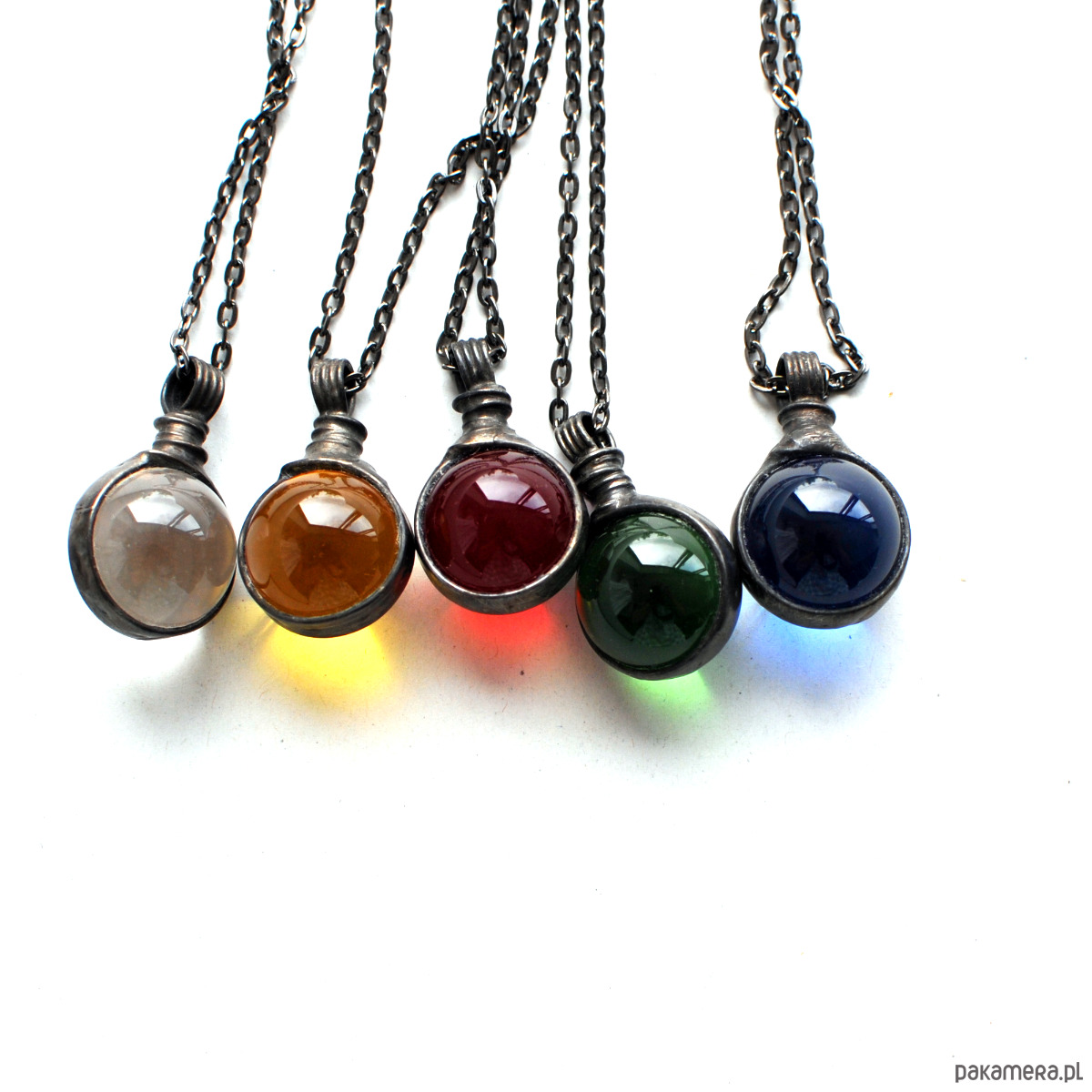 Uroczy naszyjnik wykonany z barwionej szklanej kuli o bardzo wysokiej jakości. Kule są piękne, z doskonałego szkła, które wspaniale łapie i odbija słońce!