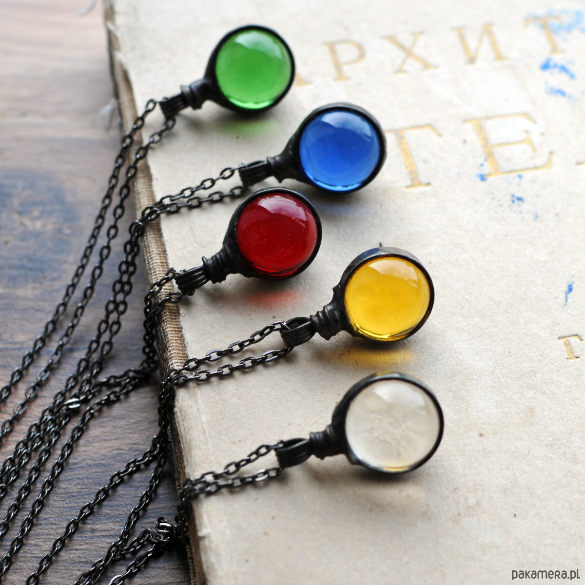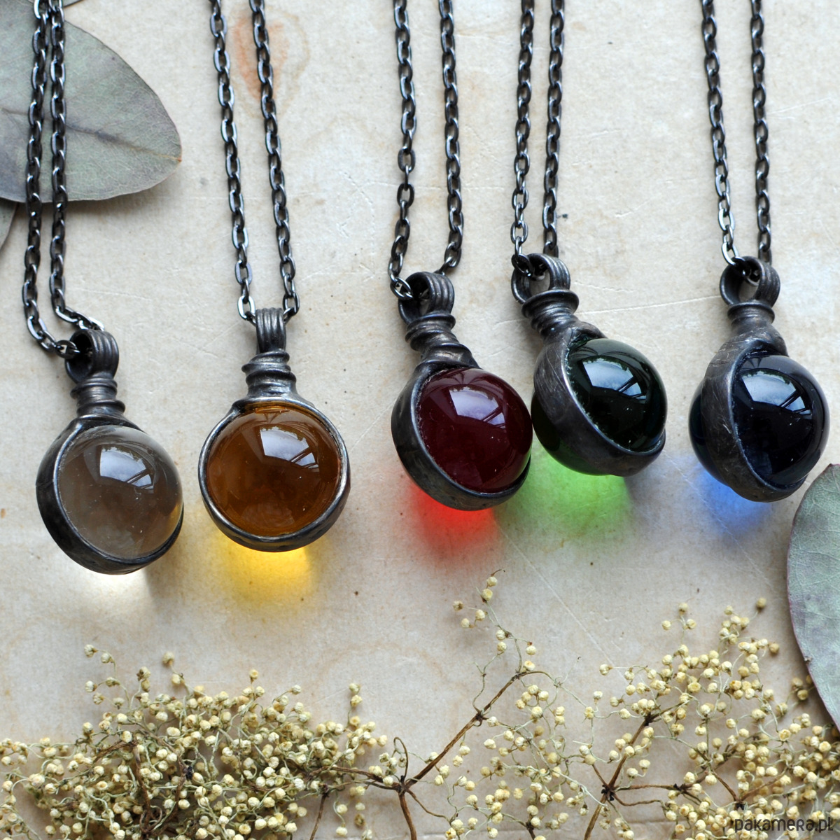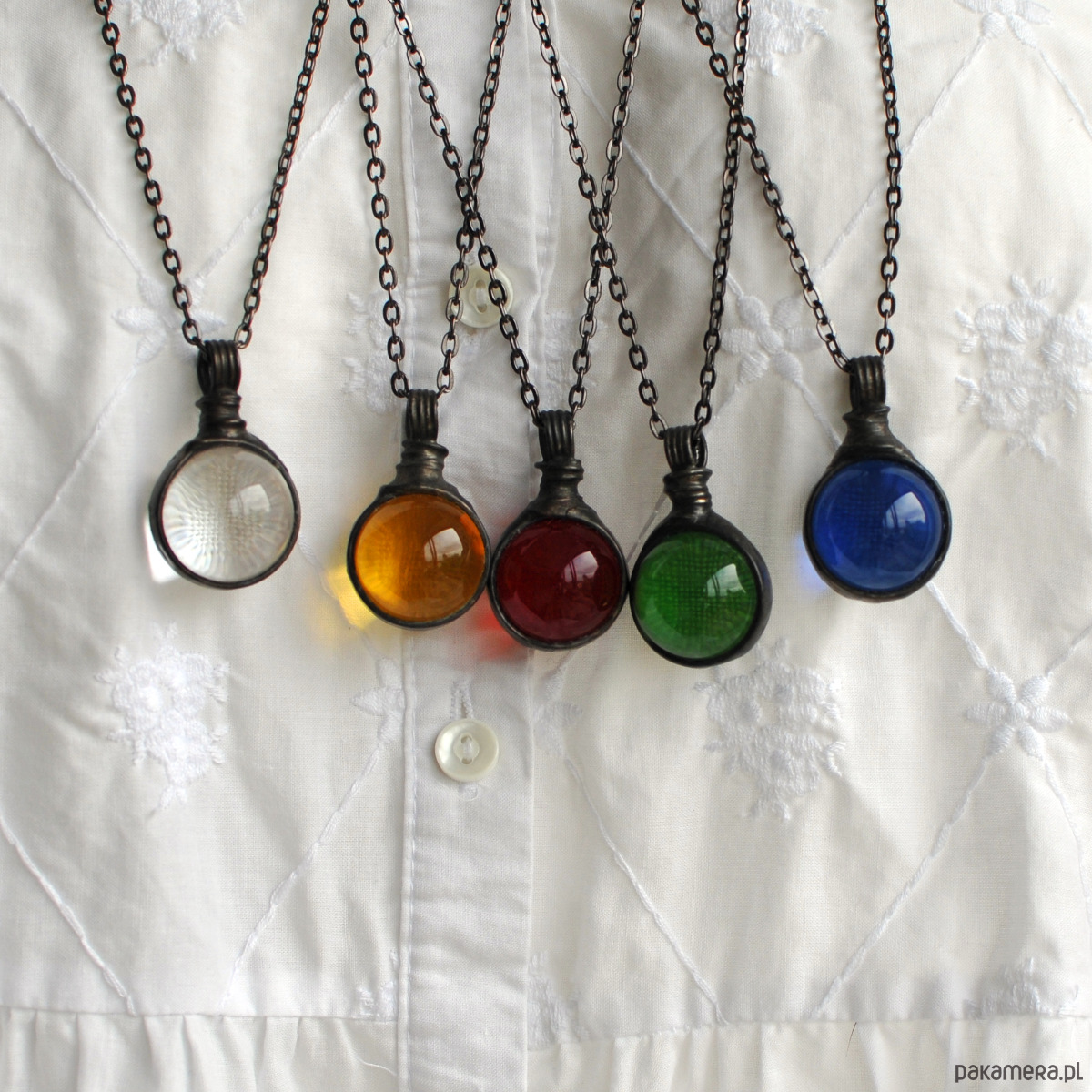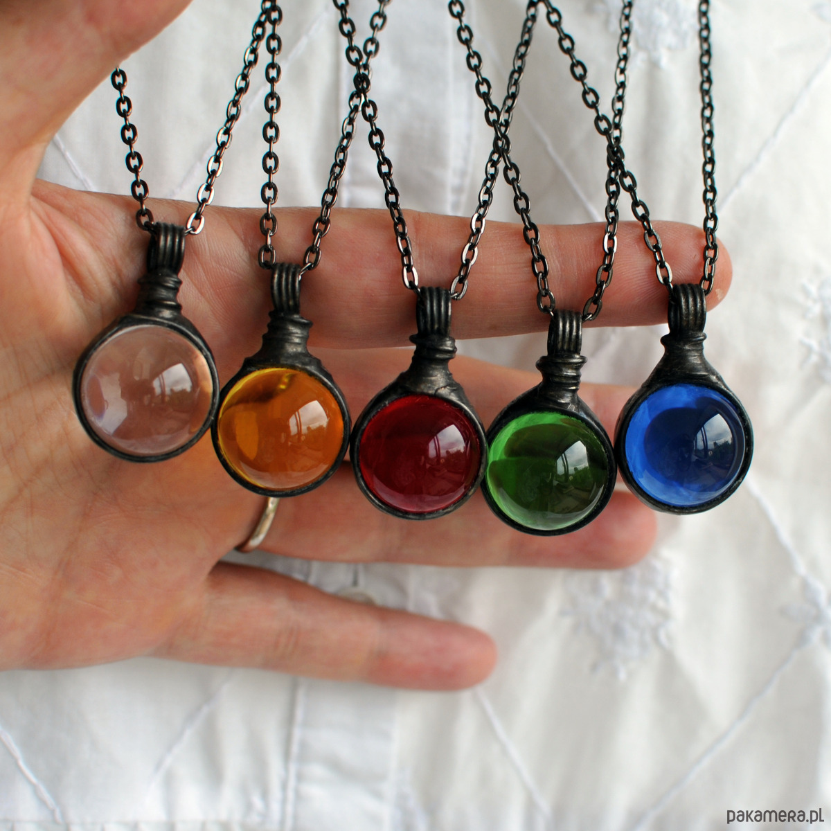 Uroczy naszyjnik wykonany z barwionej szklanej kuli o bardzo wysokiej jakości. Kule są piękne, z doskonałego szkła, które wspaniale łapie i odbija słońce!