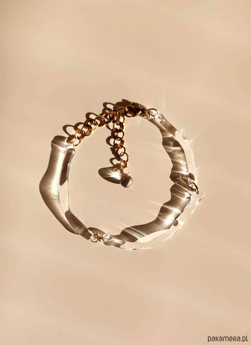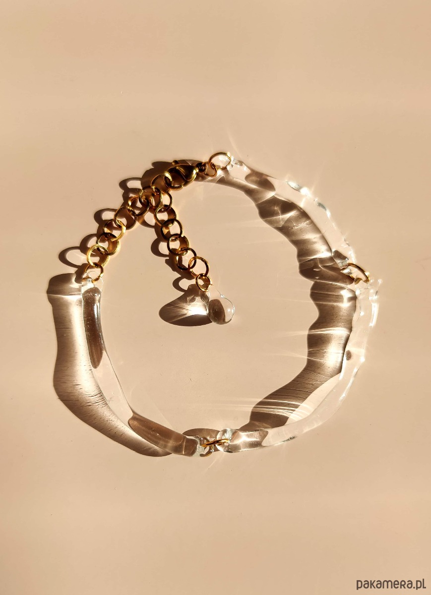 Szklana, łańcuchowa bransoletka "Coral" z ogniw o nieregularnej formie
