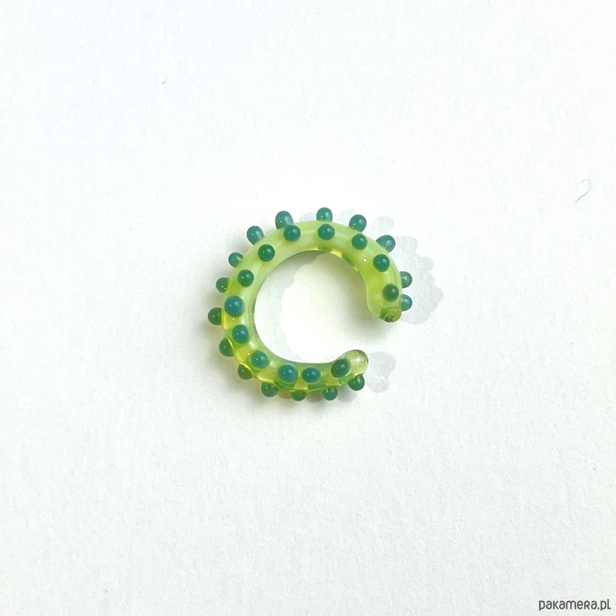 Szklana nausznica Pixie jasno zielona w turkusowe kropki