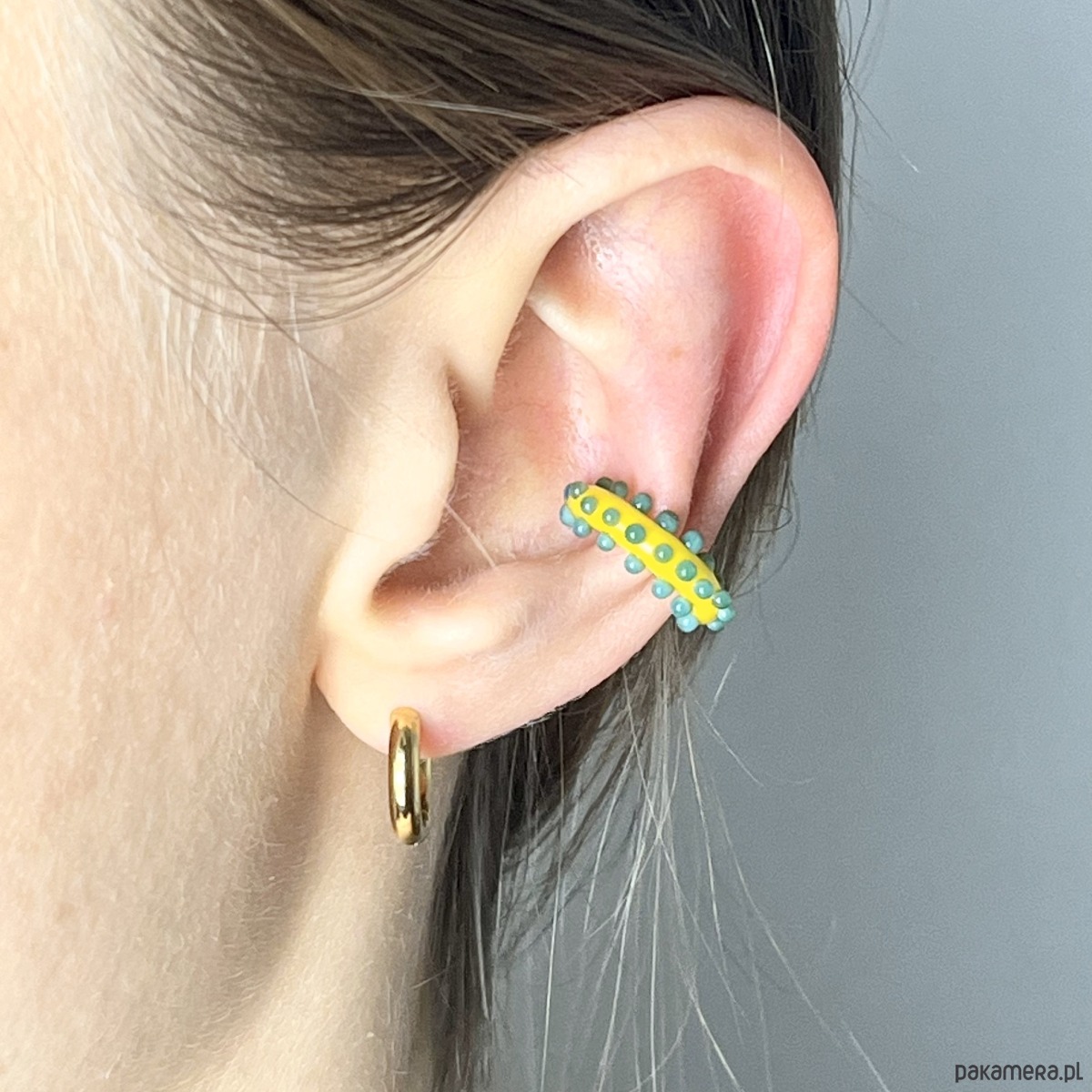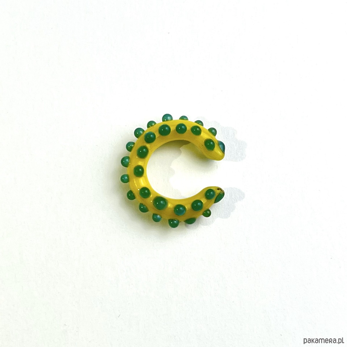 Szklana nausznica Pixie żółta w turkusowe kropki