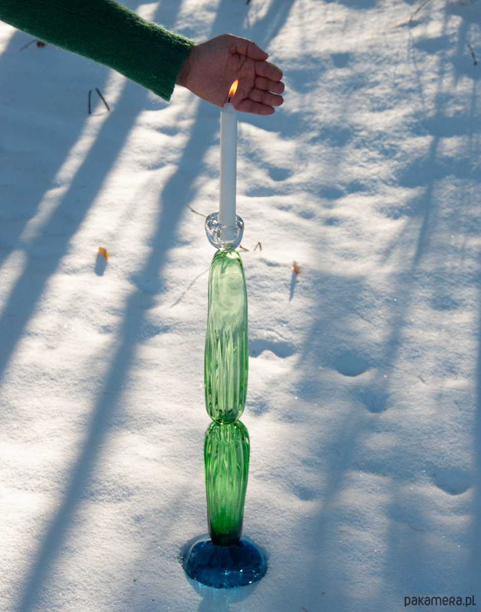 Świeczniki są wielobarwnymi pracami wykonanymi specjalnie do kolekcji „Optyk” którą na bieżąco rozwijam ,wzbogacam o kolejne produkty.