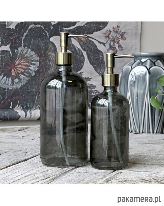 Dozownik do mydła wykonany ze szkła. W stylu retro. Pompka jest metalowa w kolorze antycznego złota. Całość prezentuje się bardzo ciekawie.