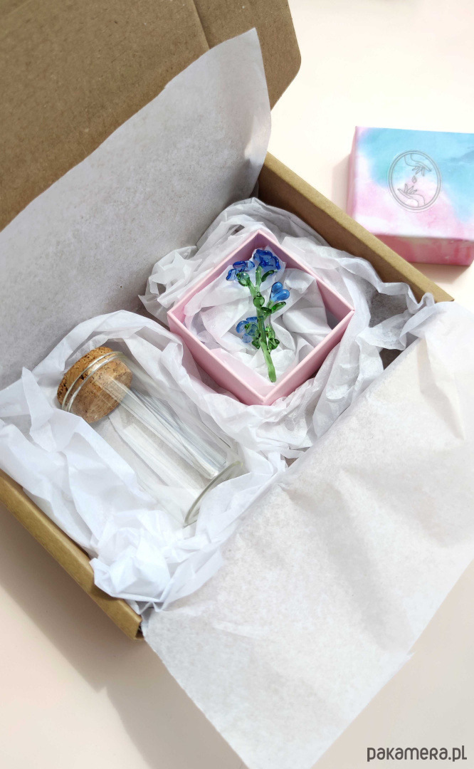Gdy produkt do Ciebie dotrze, wyjmij szklaną gałązkę z pudełeczka i delikatnie umieść w buteleczce. Buteleczkę zamknij korkiem i gotowe :) Teraz znajdź dla swojego mini bukietu miejsce, w którym będziesz mogła/mógł podziwi