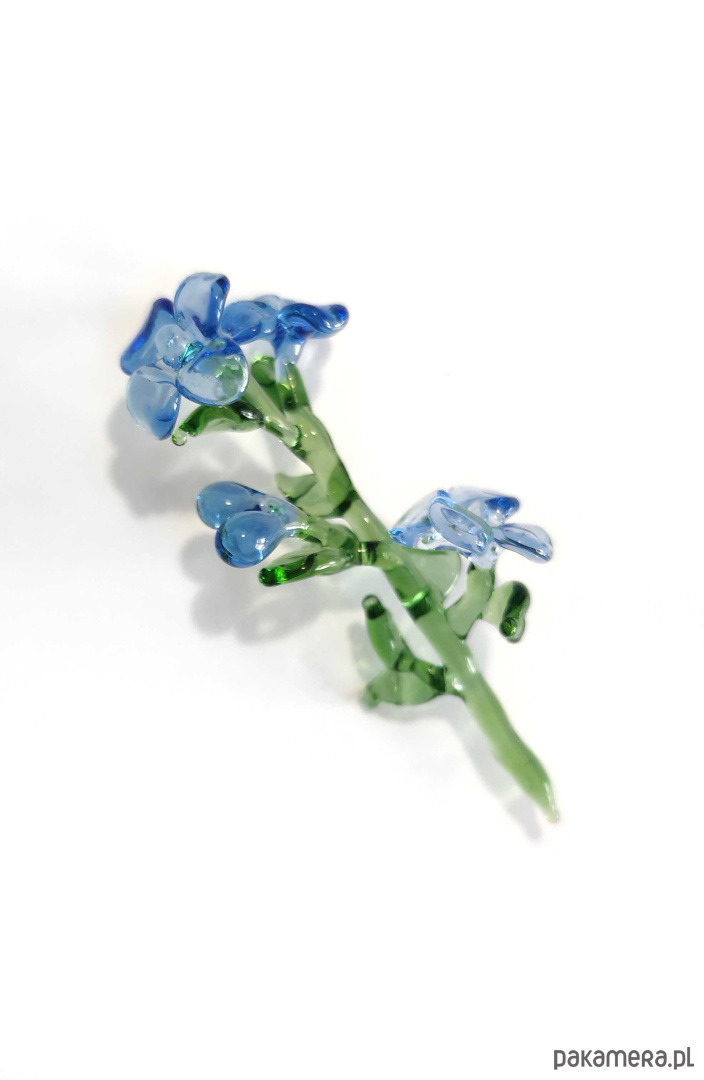 Szklany kwiat w butelce - niebieska niezapominajka, dekoracja kwiatowa boho