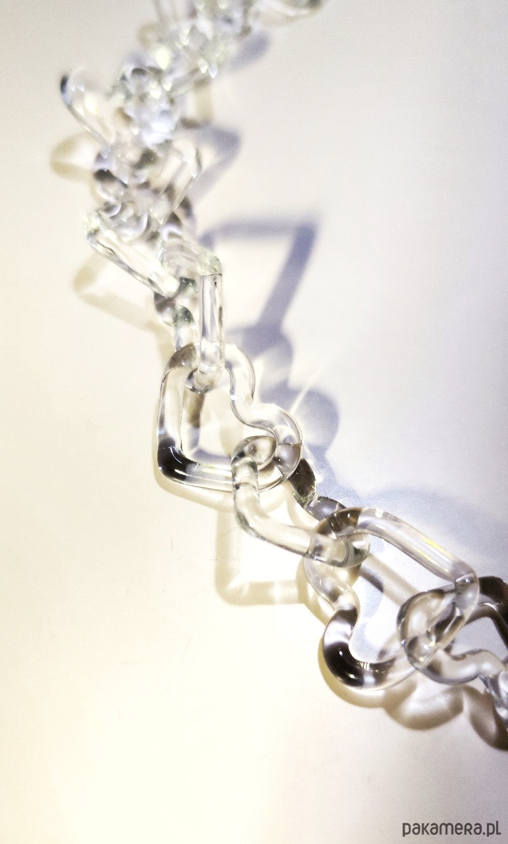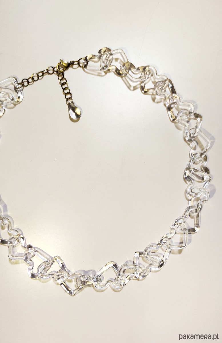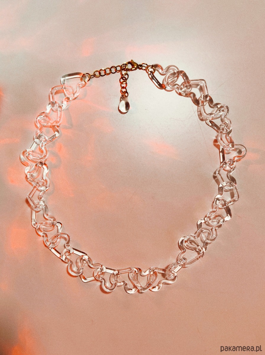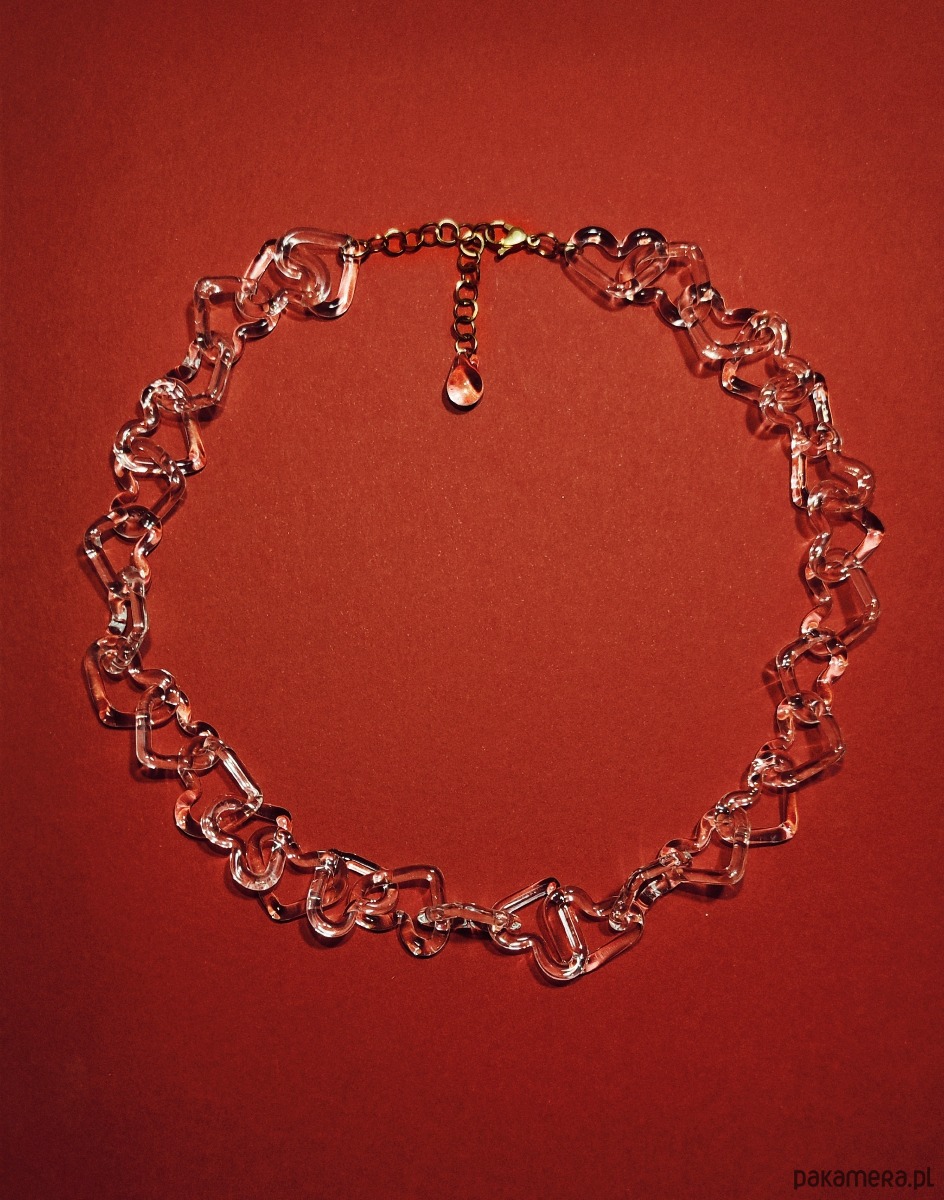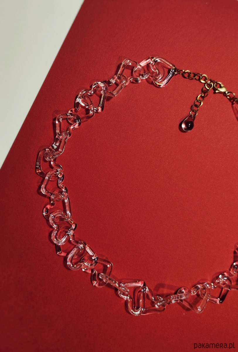 Przejrzyste, szklane ogniwa w kształcie serc splatają się w nierozerwalny łańcuch. Choć szkło pozornie odbierane jest jako kruche, w tej formie staje się manifestem wewnętrzej siły. To miłość, która nie musi krzyczeć kolorami, by być zauważoną; jej potęga drzemie w świetle, które przez nią przenika.