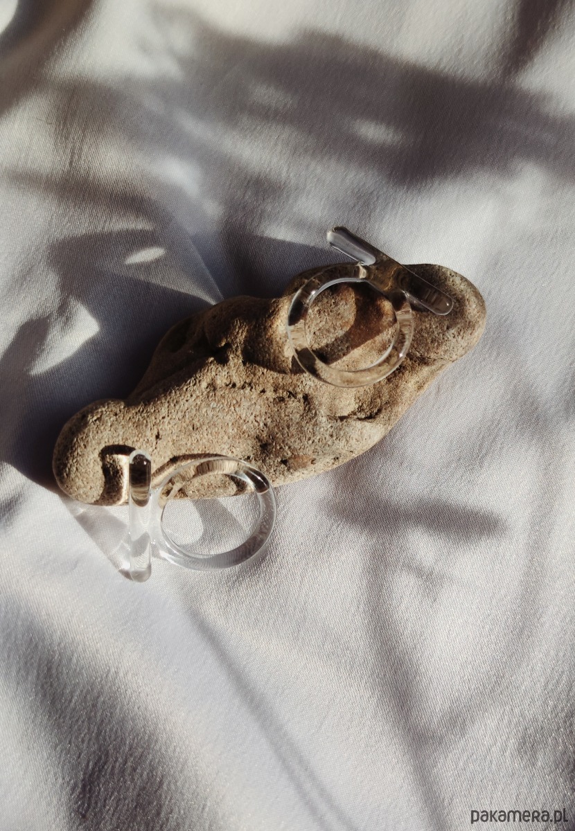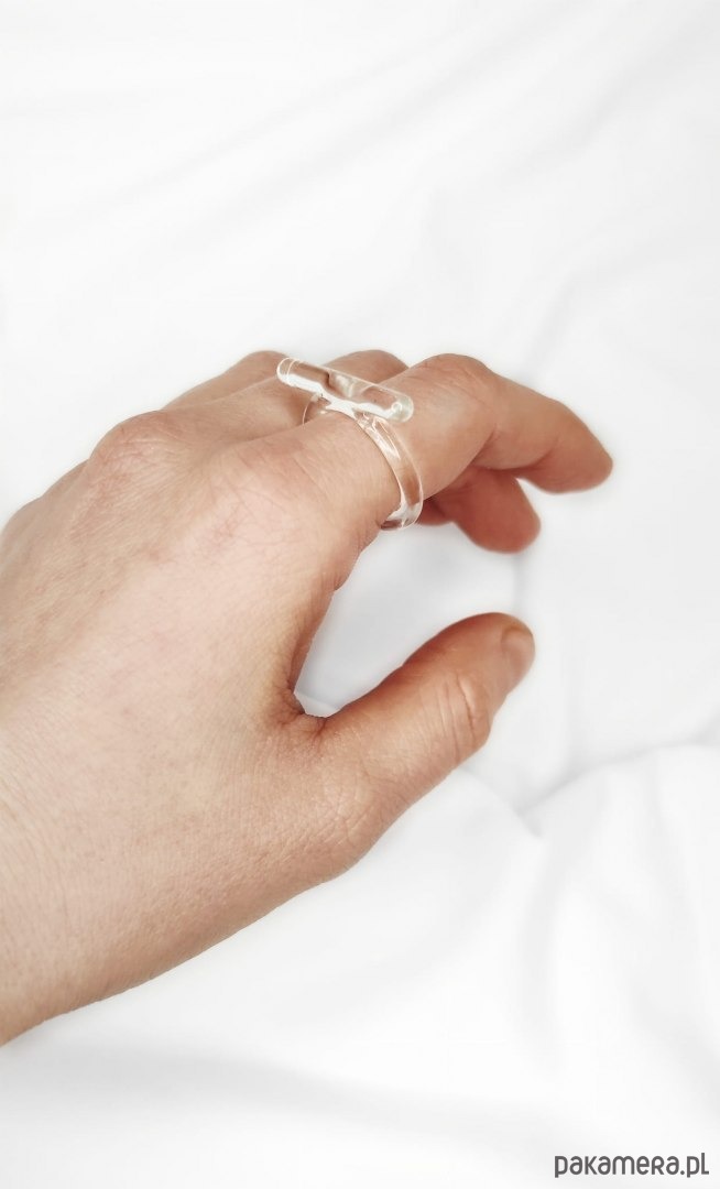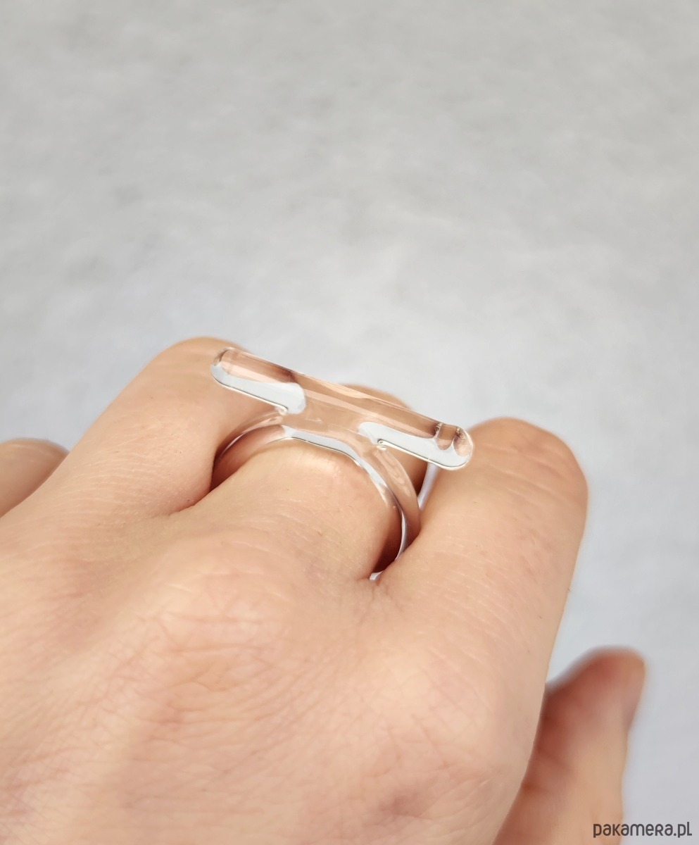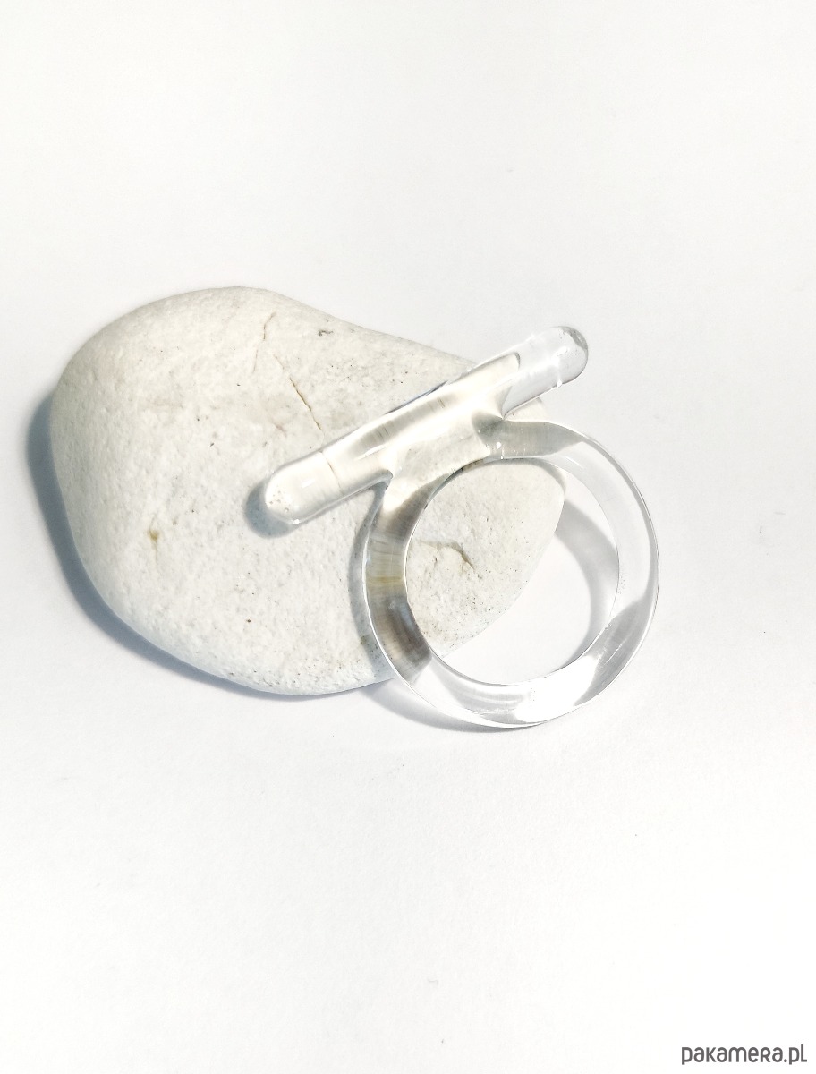 Wyjątkowy pierścionek - obrączka ze szkła. Minimalistyczna klasyka, która została przełamana wyrazistą linią.