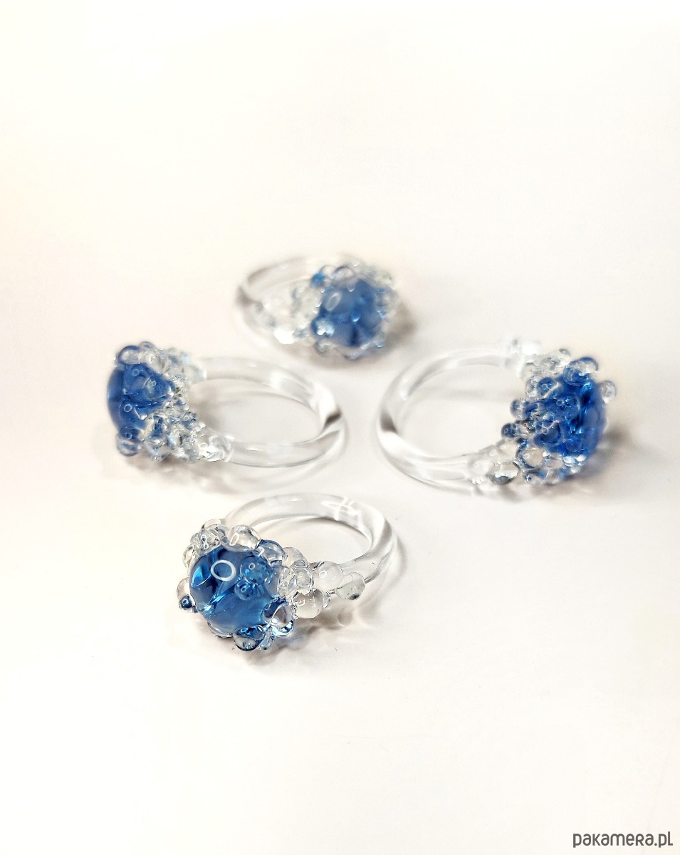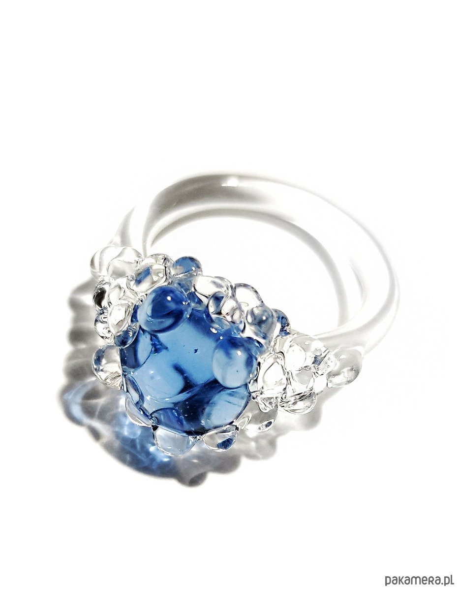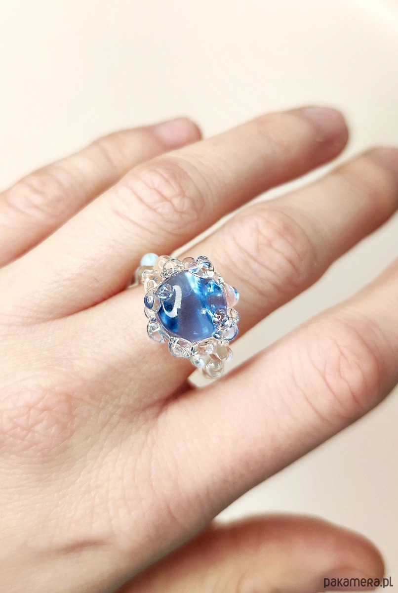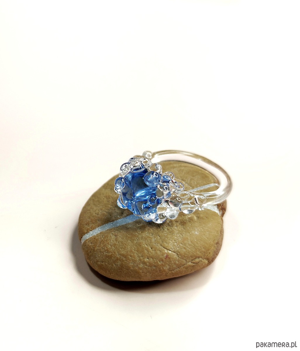 Szklany pierścionek "Nereida" błękitny