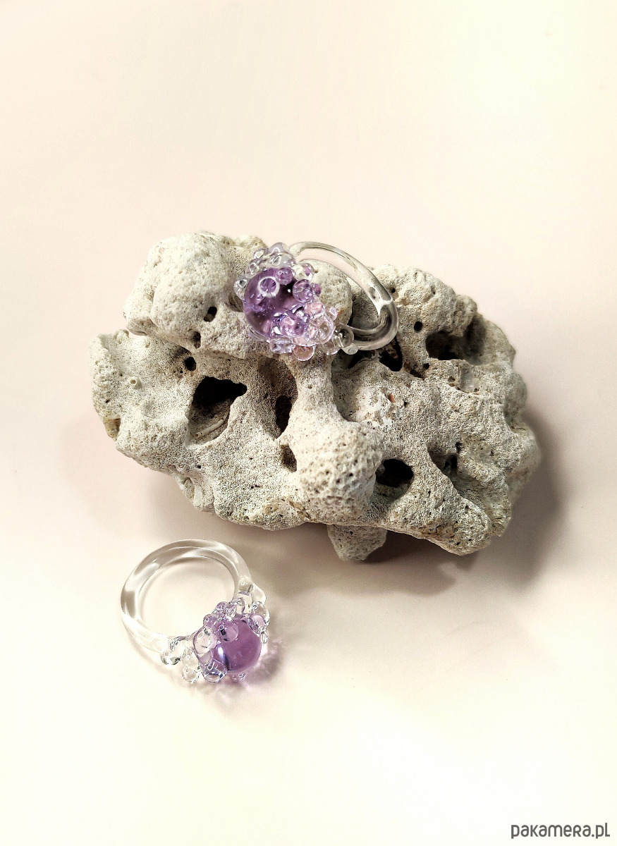 Szklany pierścionek "Nereida" fiolet neodymowy