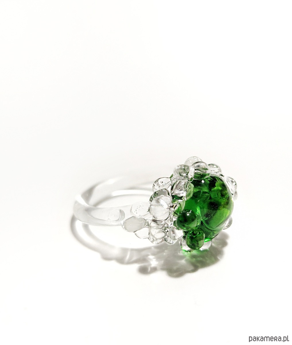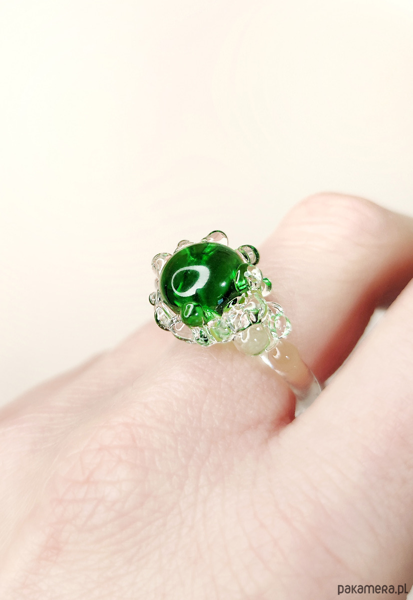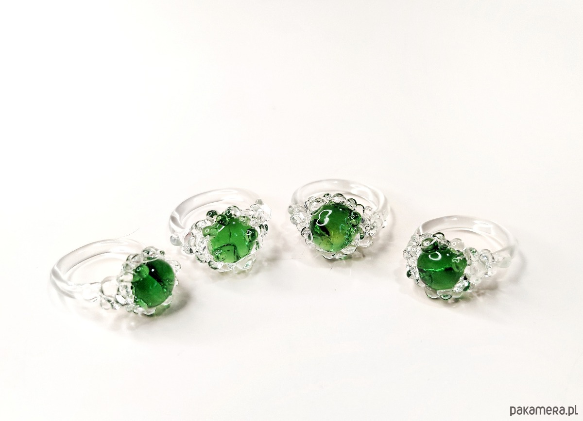 Pamiętaj, że szkło borokrzemowe, z którego został wykonany Twój pierścionek jest jednym z najwytrzymalszych rodzajów szkła, dlatego nie obawiaj się nosić szklanej biżuterii na co dzień :)