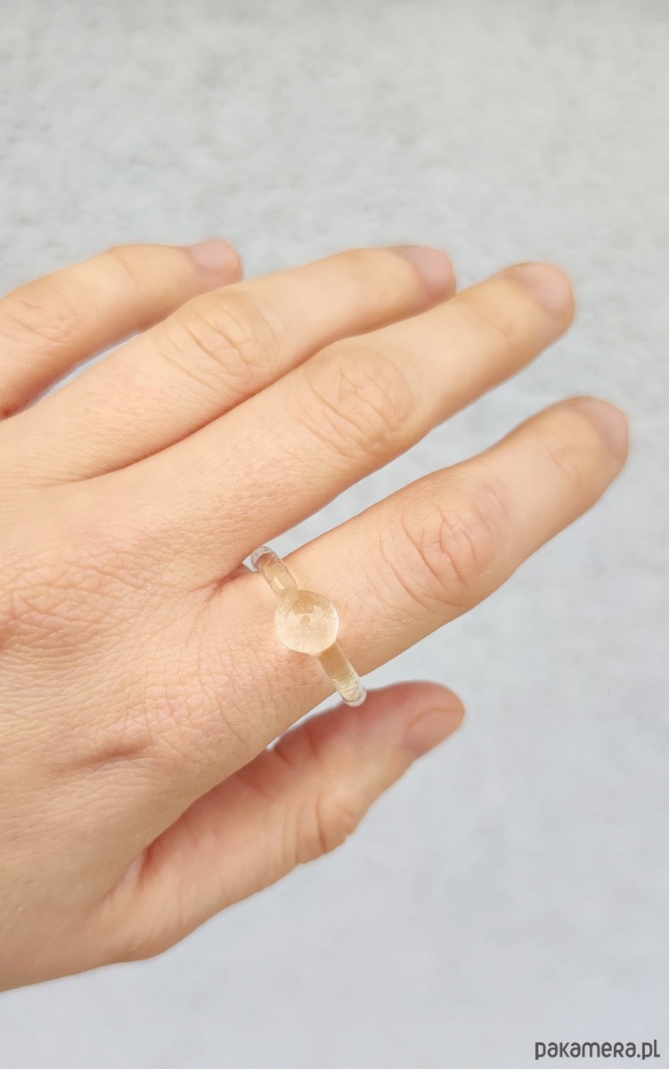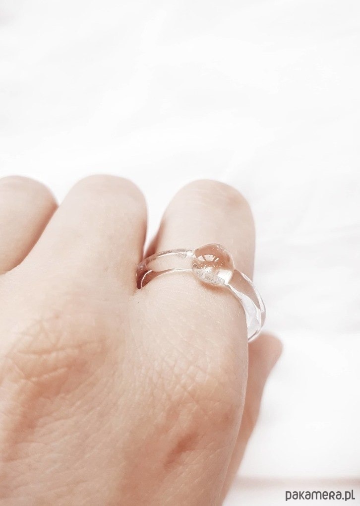 Pierścionek ze szkła ze zdobieniem w formie półkuli. Minimalistyczny model, który będzie idealnym dopełnieniem Twojego look'u.