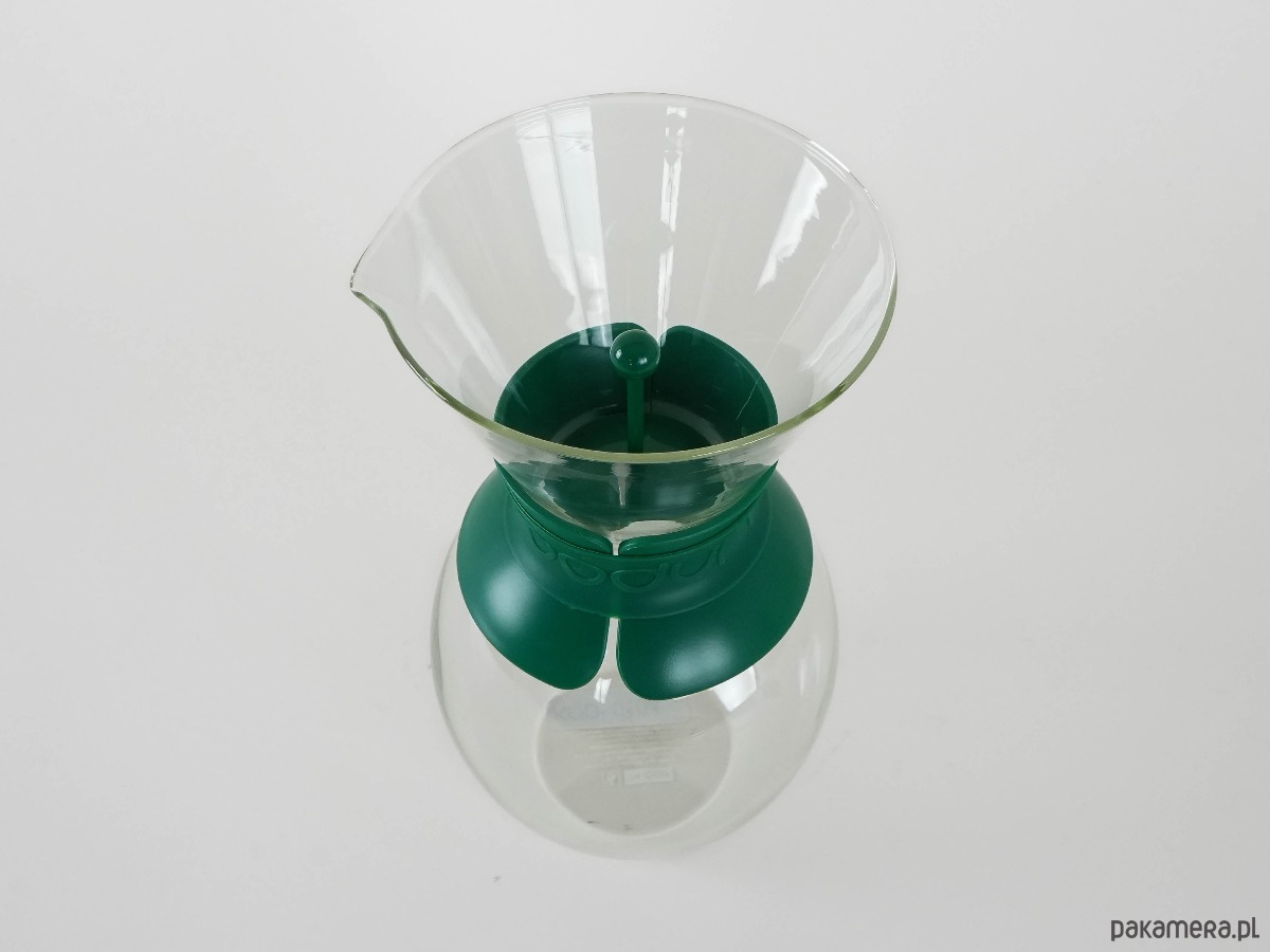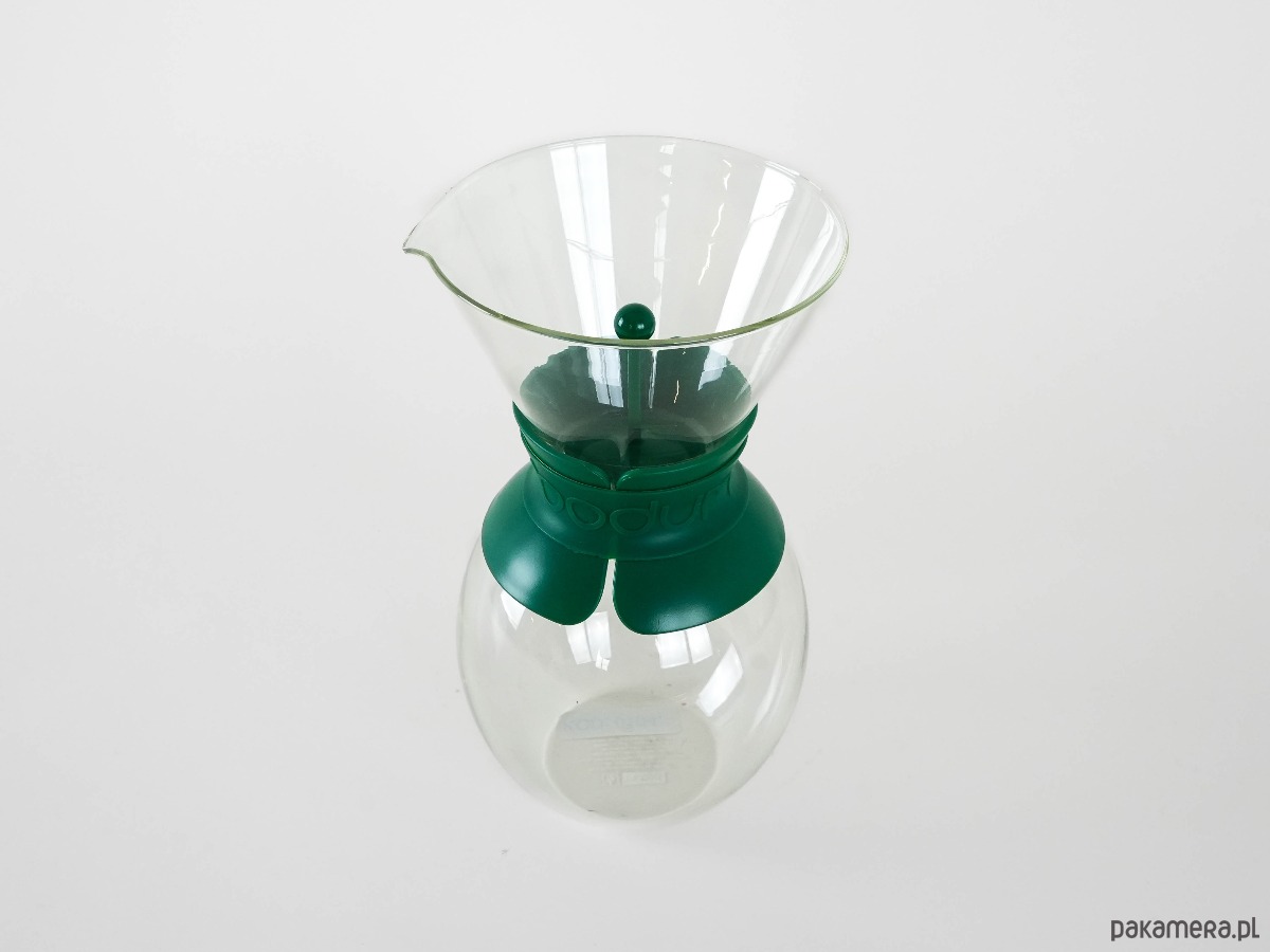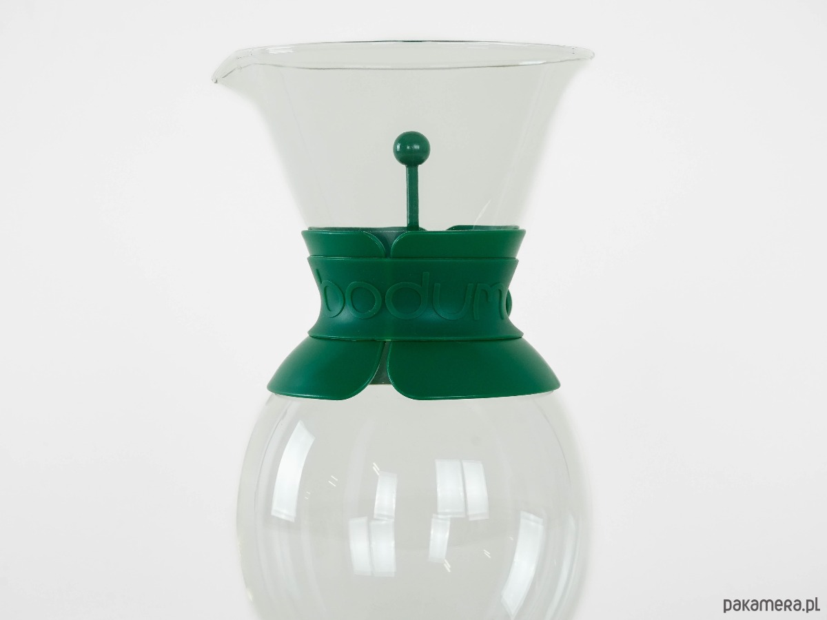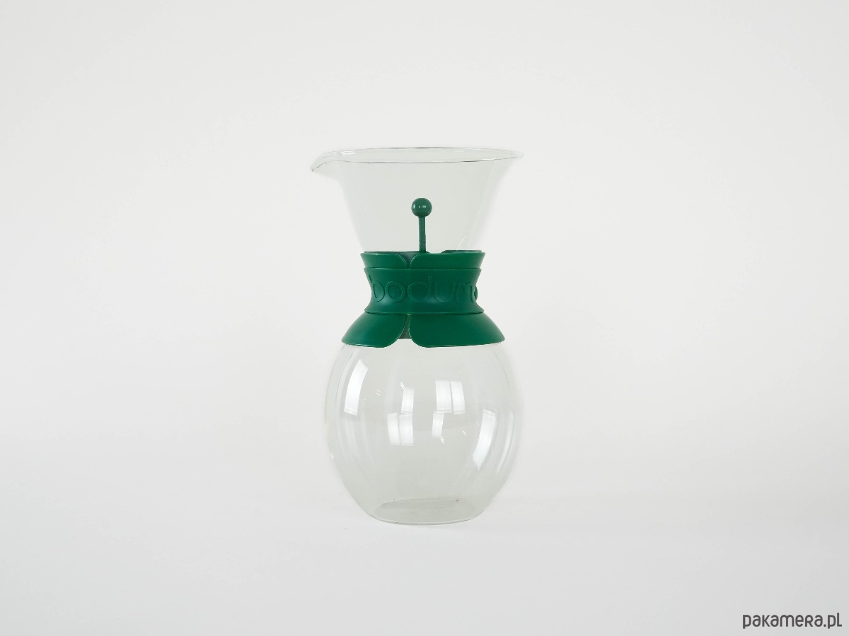 Stylowy przelew do kawy marki Bodum, wykonany z wysokiej jakości szkła borokrzemowego z zielonym, silikonowym kołnierzem ochronnym. Nowoczesny design łączy funkcjonalność z estetyką – idealny zarówno do codziennego użytku, jak i jako dekoracyjny element kuchni. Przykład charakterystycznego dla Bodum skandynawskiego podejścia do prostoty i formy.