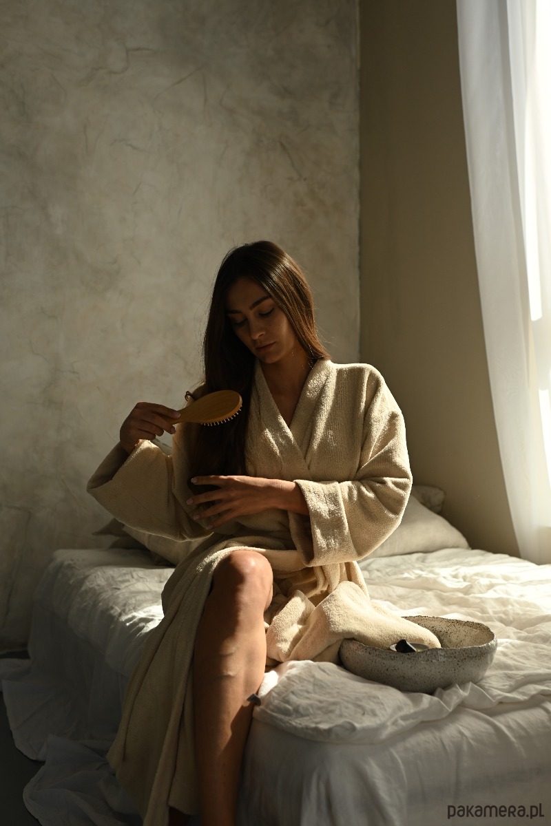 Struktura frotte pozwala na swobodny przepływ powietrza, nie przylegając do ciała, a jednocześnie doskonale wchłaniając wodę. Skóra oddycha, a Ty czujesz się świeżo i komfortowo.