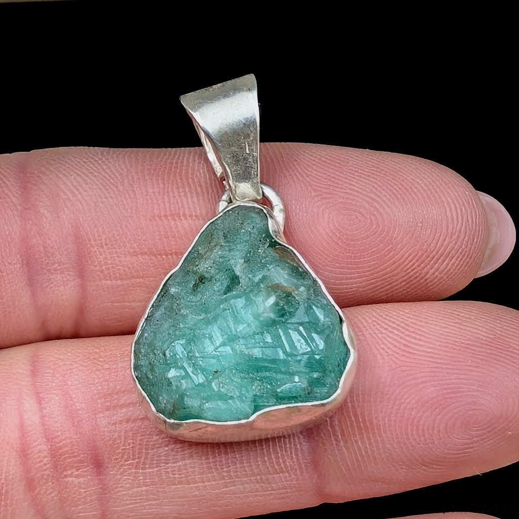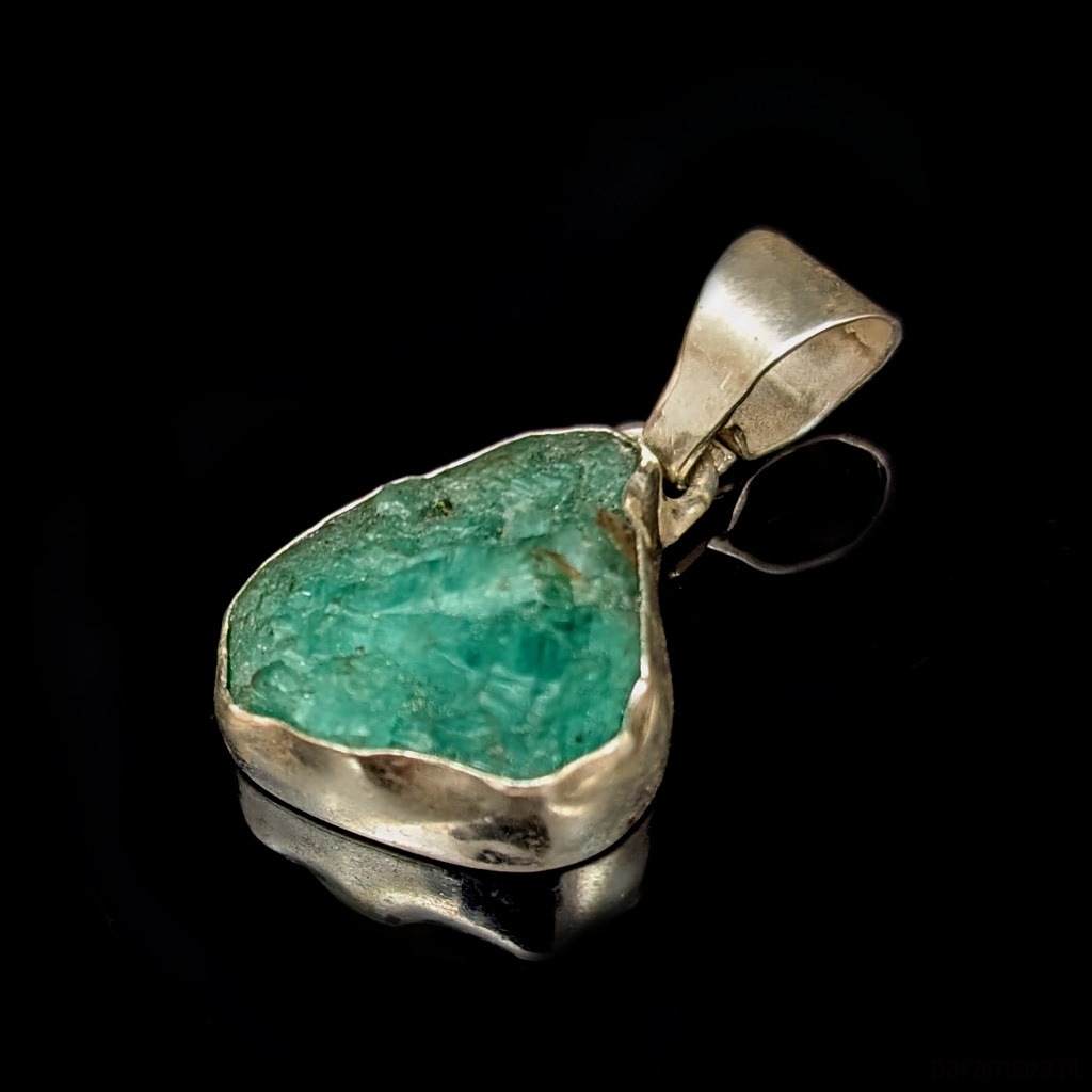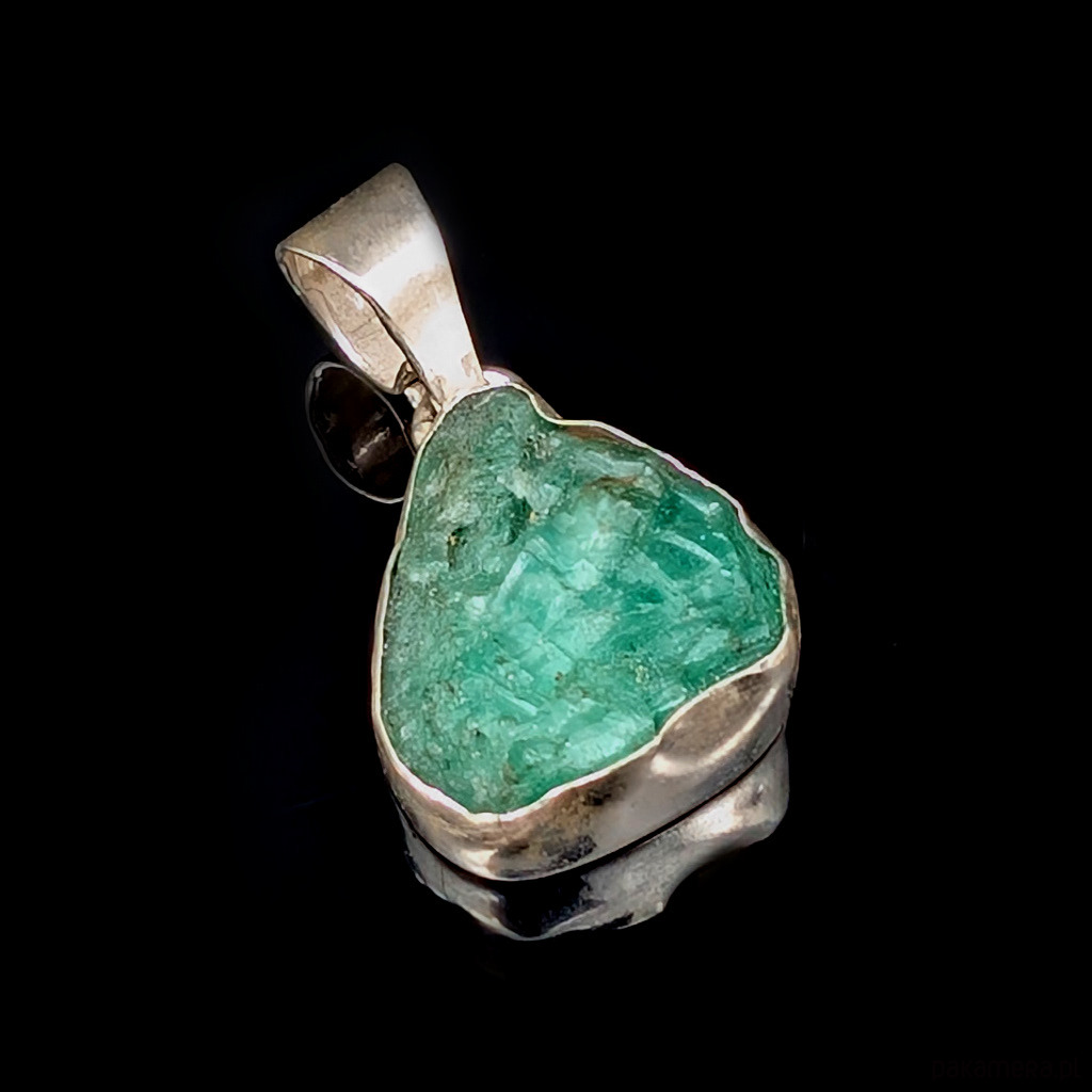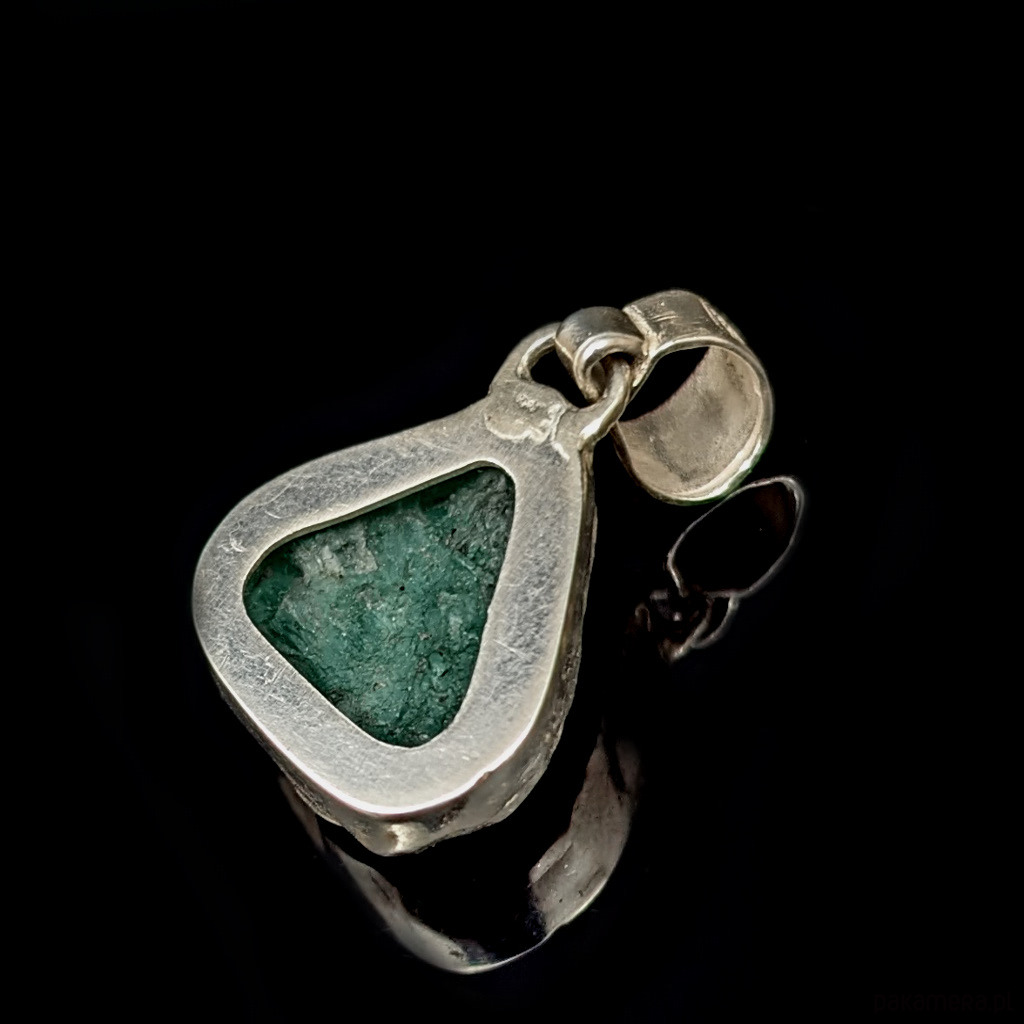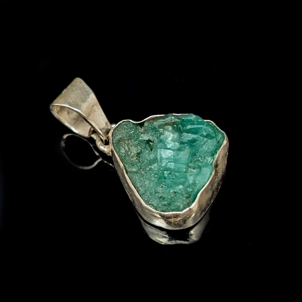 Ciekawy wisior wykonany ze srebra próby 925 oraz naturalnego szmaragdu o pięknym połysku.