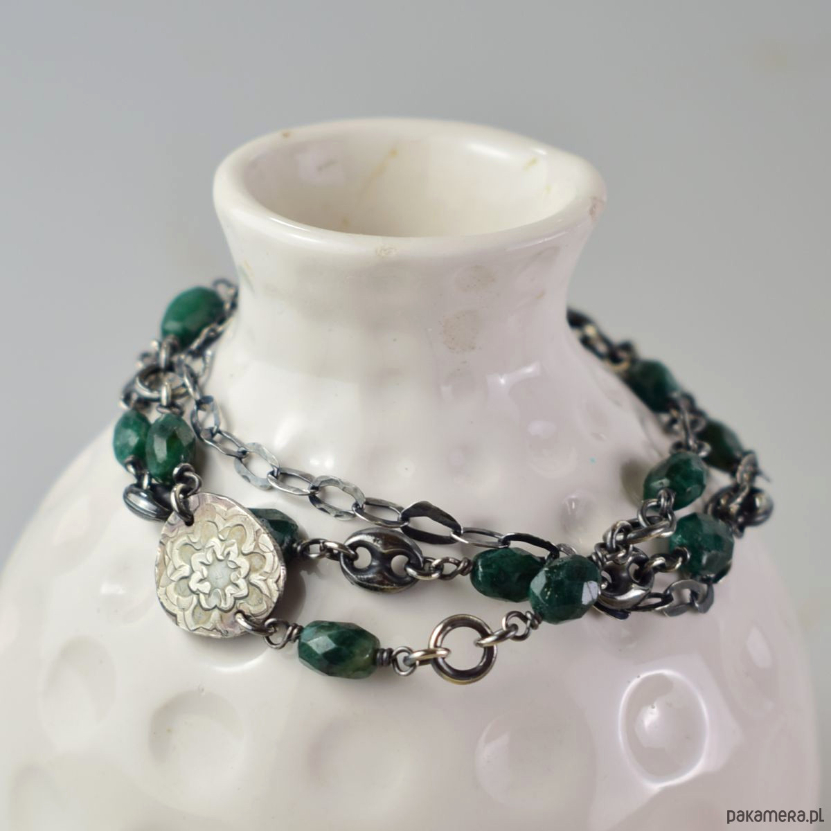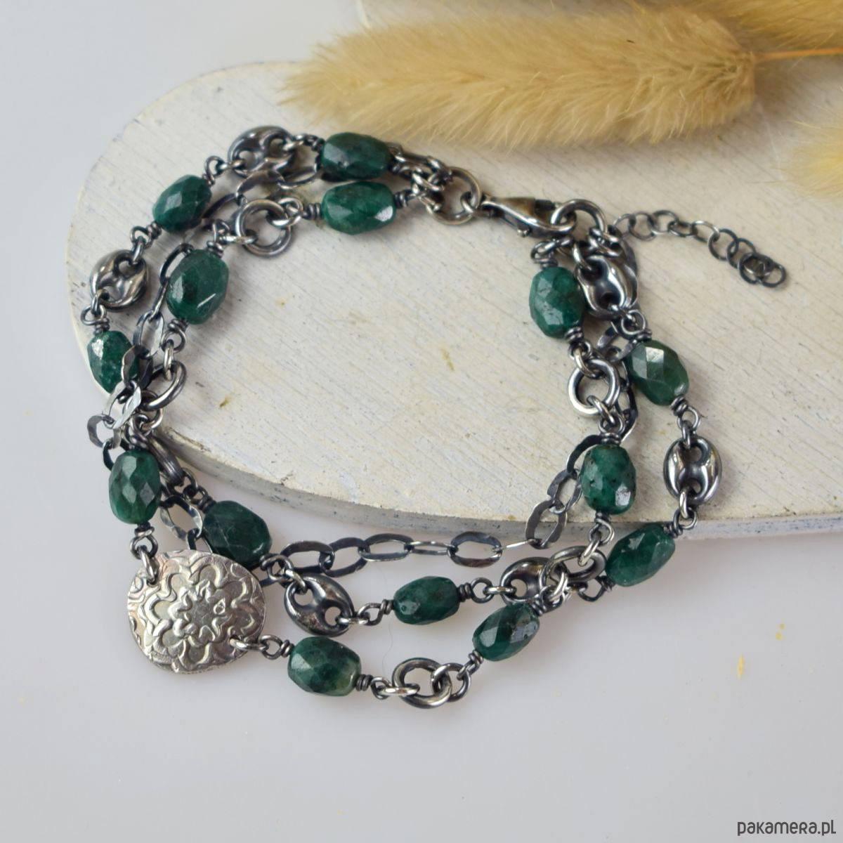 Szmaragd w srebrze - bransoletka
