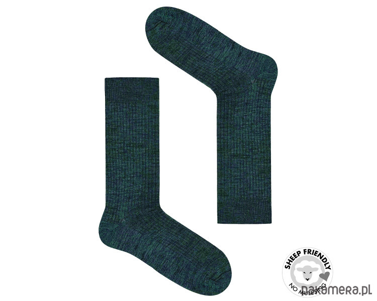 Szmaragdowe skarpetki w prążki z wełny merino