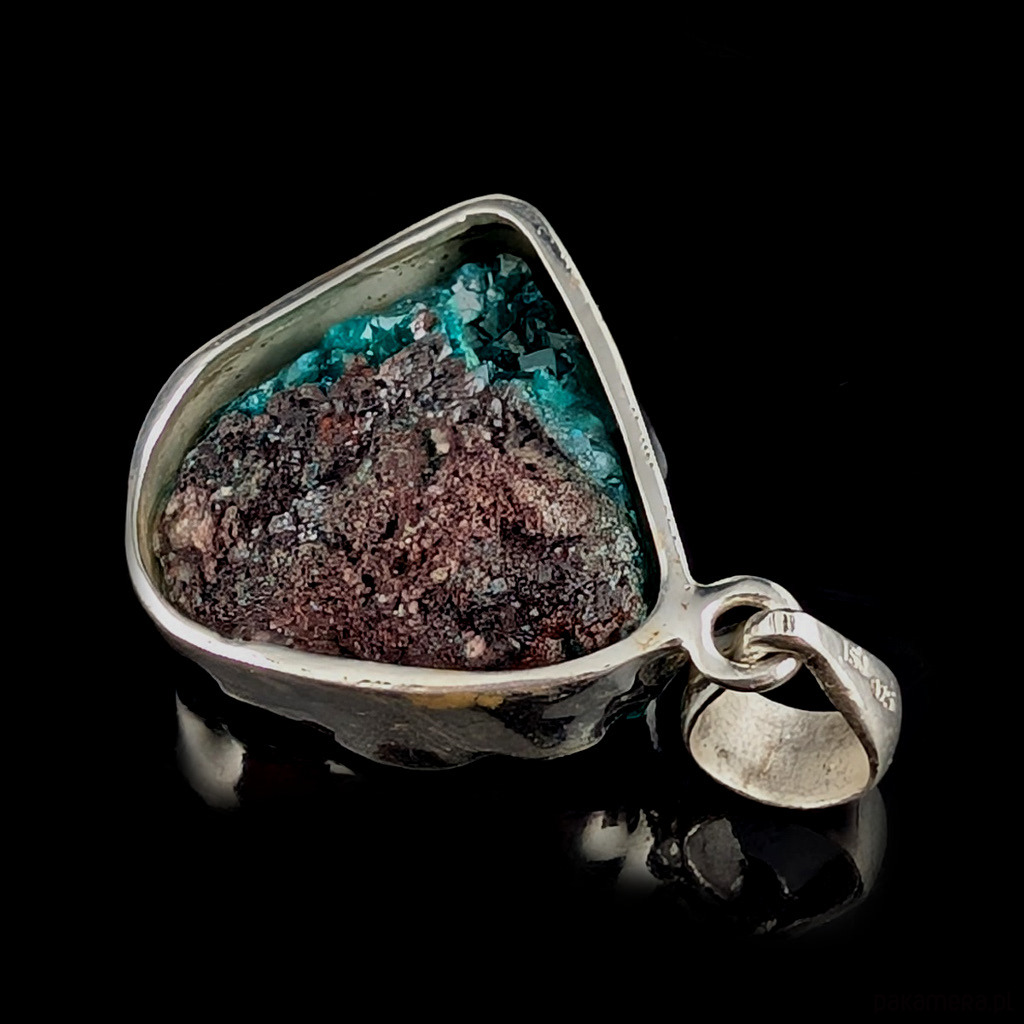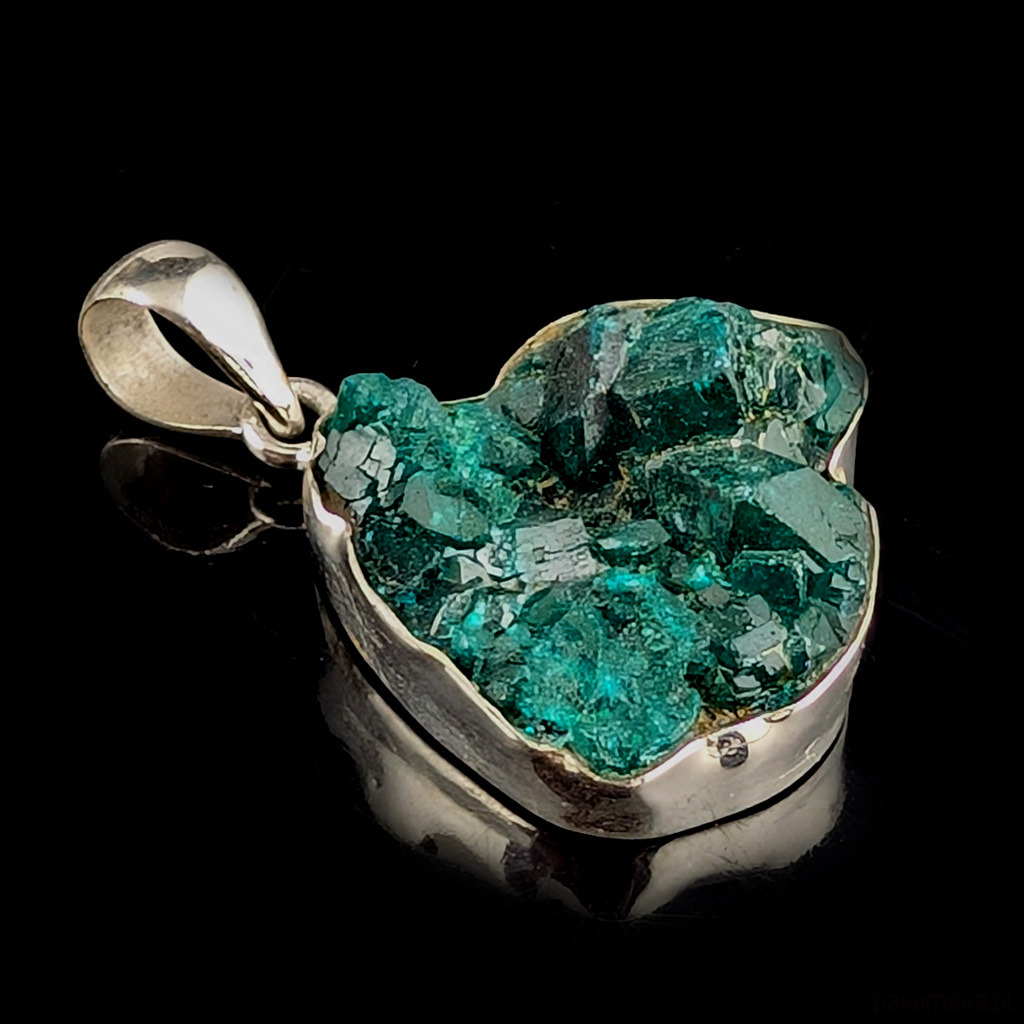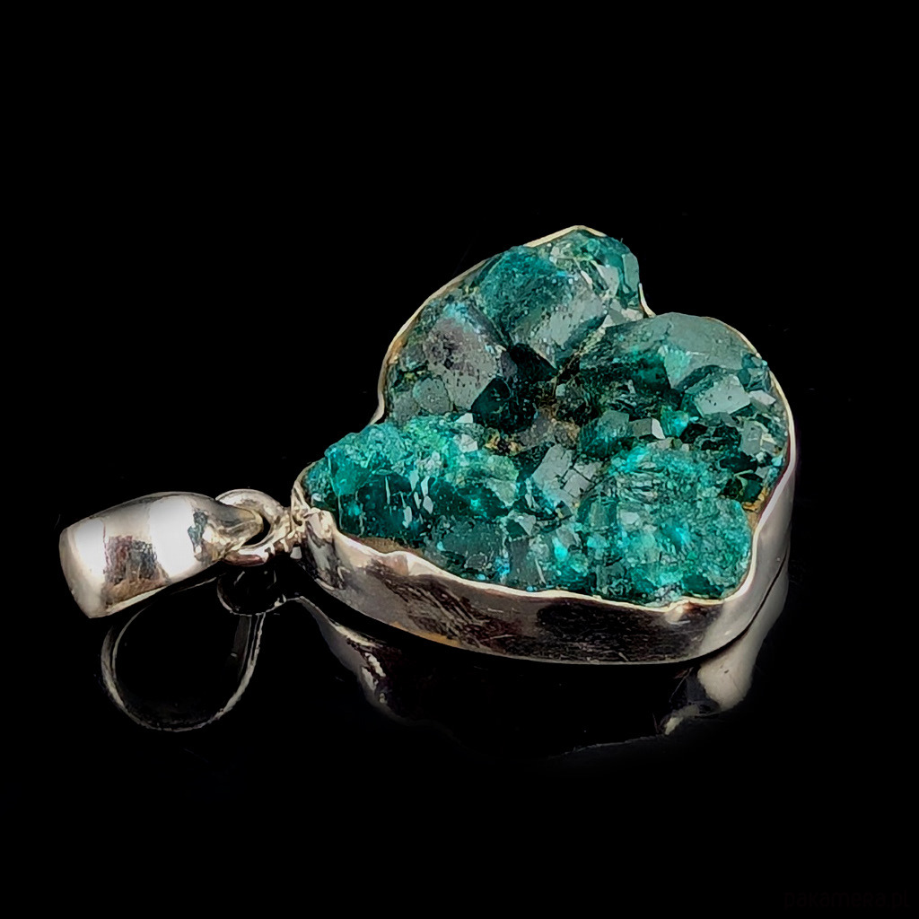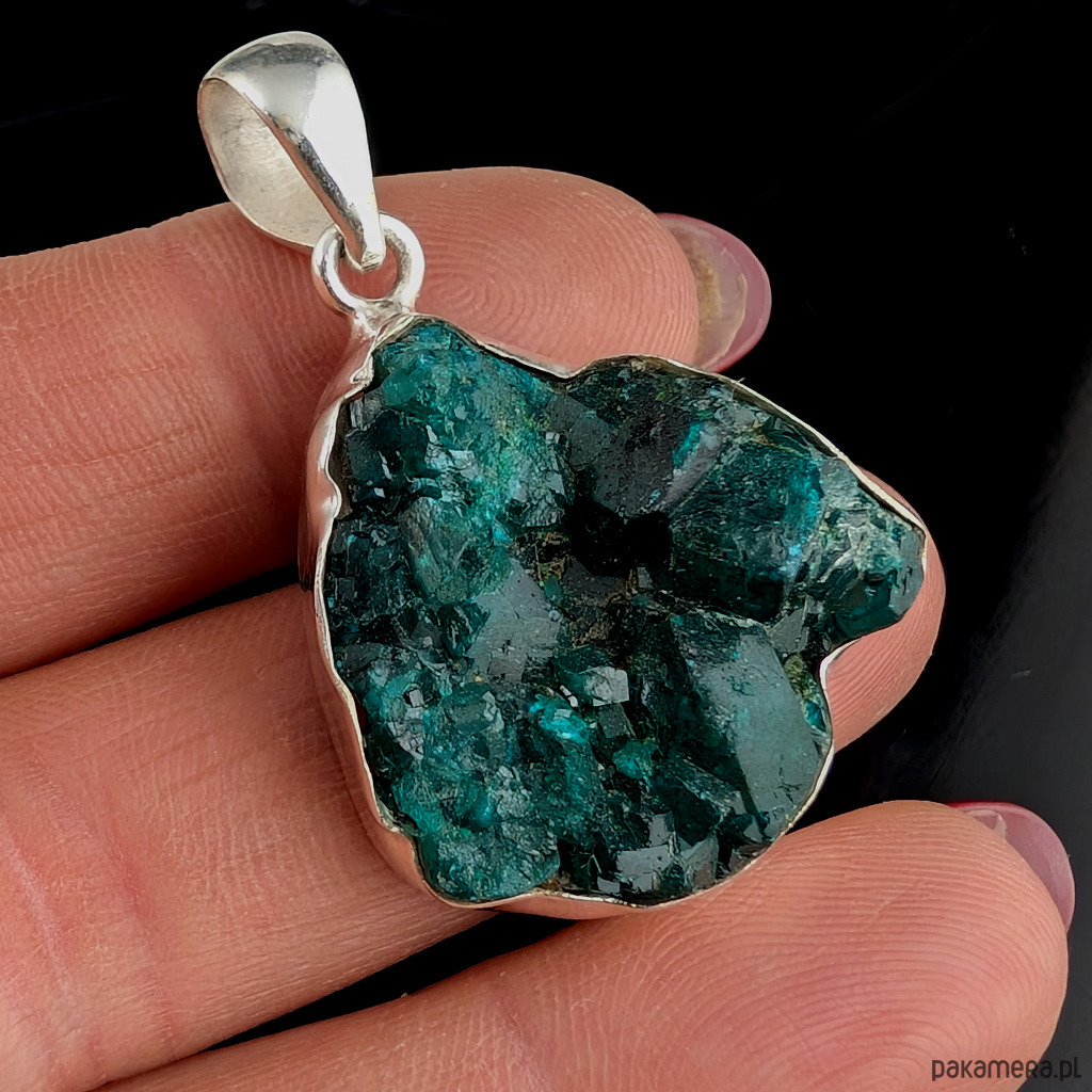 Wisior z przepięknym, rzadkim i efektownym dioptazem oprawionym w srebro próby 925.Wisior waży 11 g. Wymiary oprawy 26 x 25 mm. Długość max. z krawatką 40 mm. Polecam, przepiękny okaz kamienia, tył wisiora jest otwarty. Wykonany przez dostawcę kamieni. Wisior zostanie zapakowany w ozdobne pudełeczko.