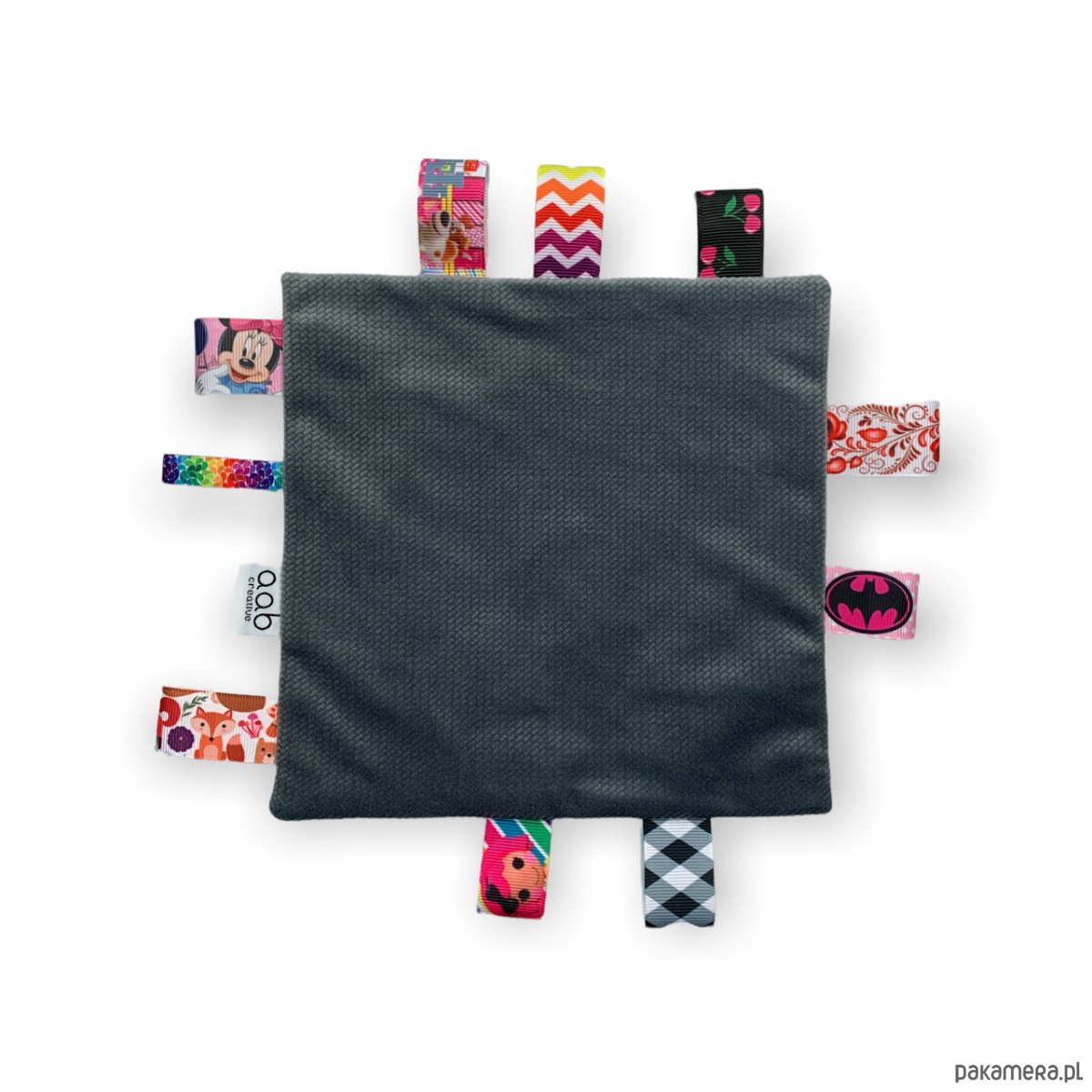 Uszyte z najwyższej jakości, bezpiecznych tkanin: 100 % bawełny i velvetu, w środku szeleszcząca folia stymulująca sensorycznie.