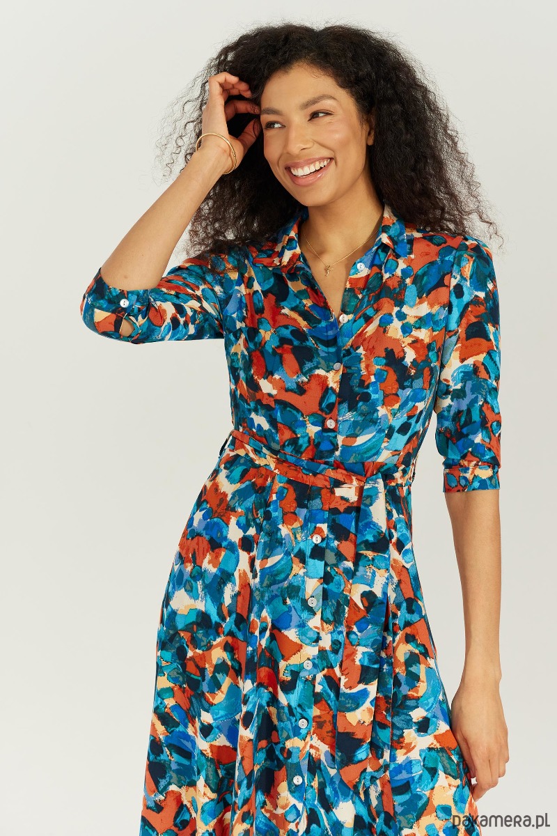 Sukienka koszulowa z kołnierzykiem i guzikami o długości 7/8.