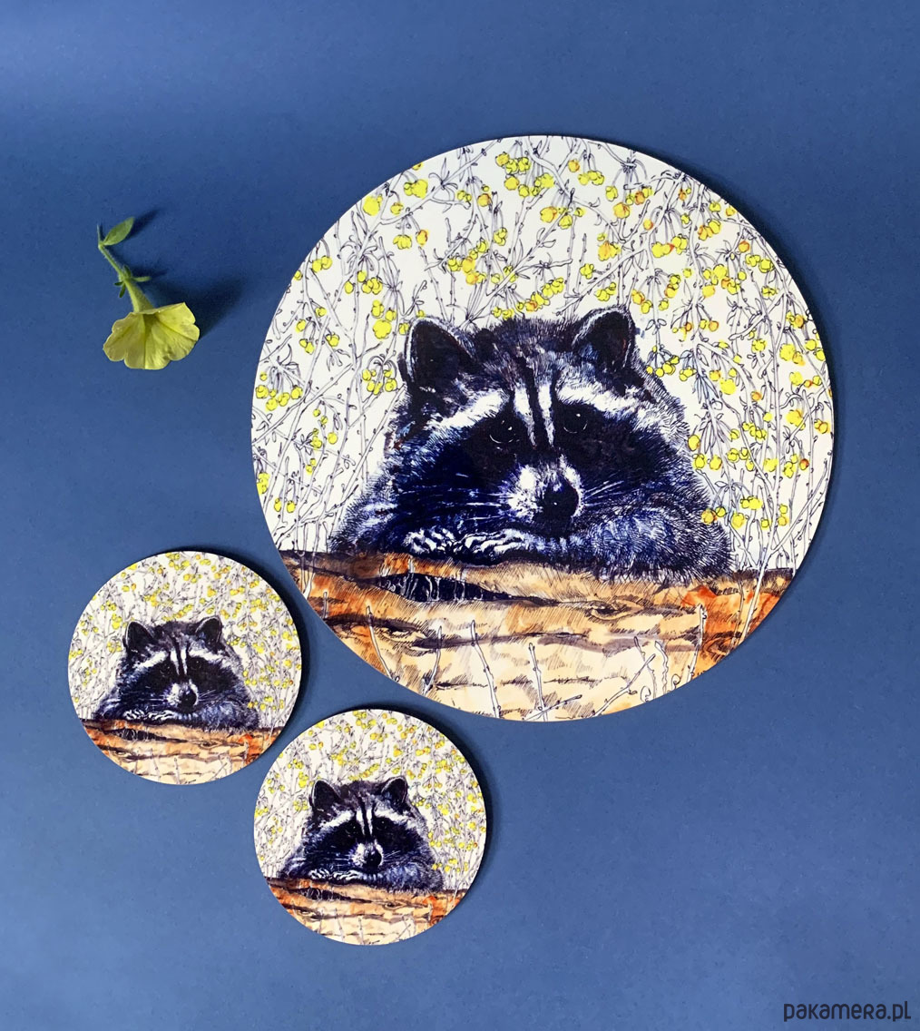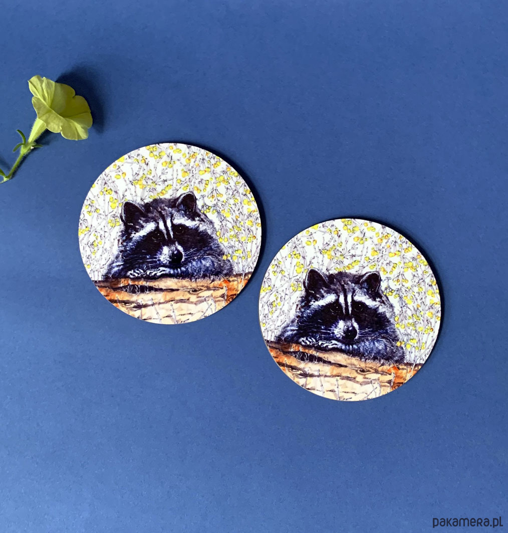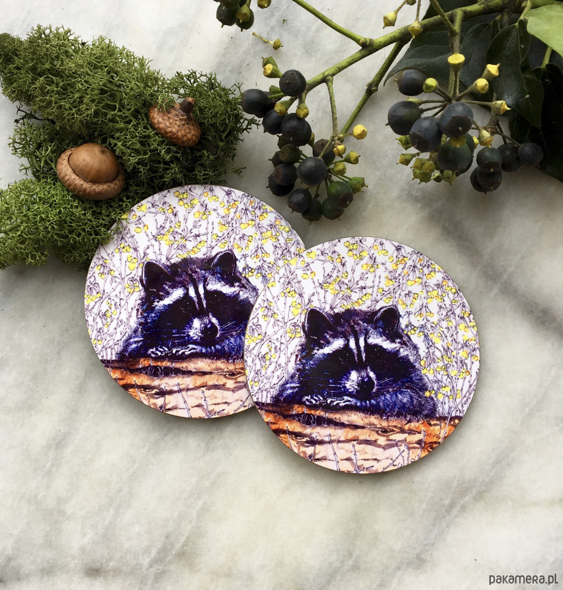 Komplet dwóch błyszczących podkładek pod kubek z autorską ilustracją