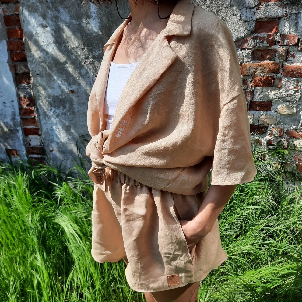 Przedstawione na zdjęciu szorty wykonane są ze 100% lnu.