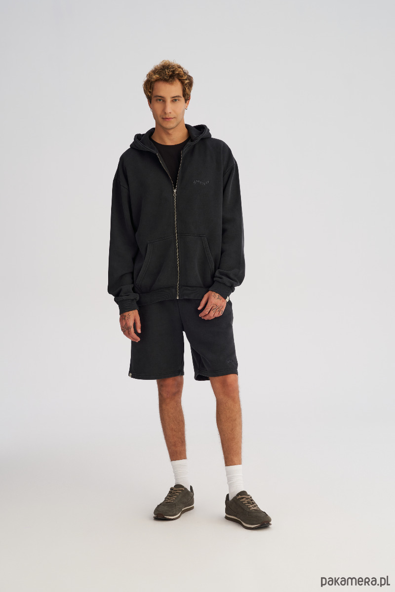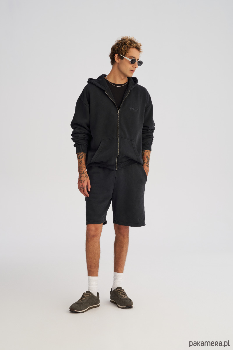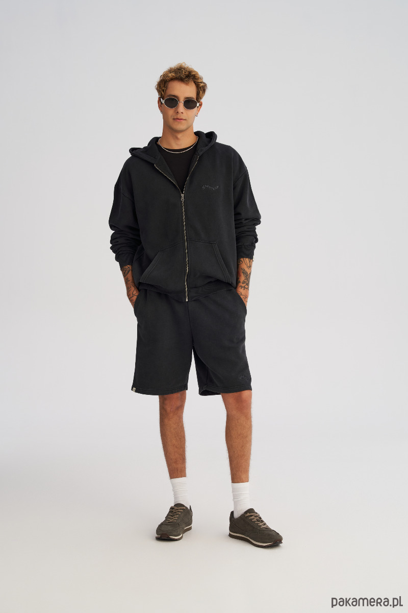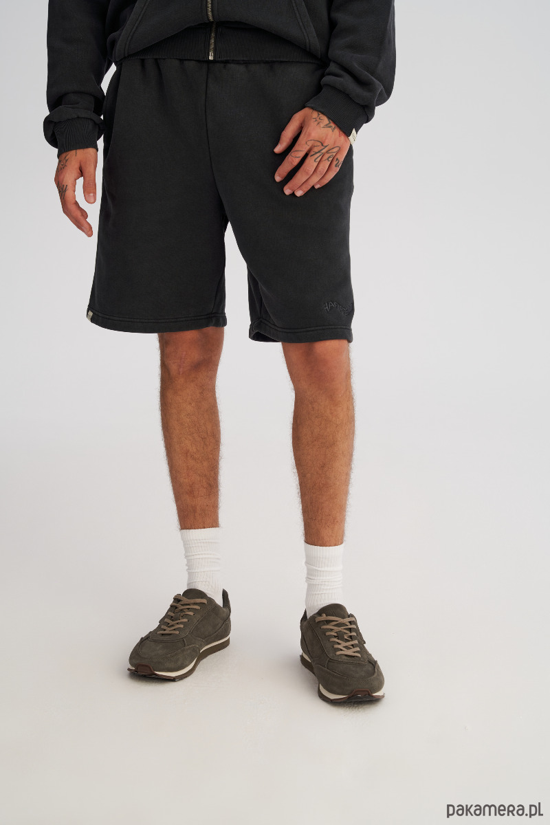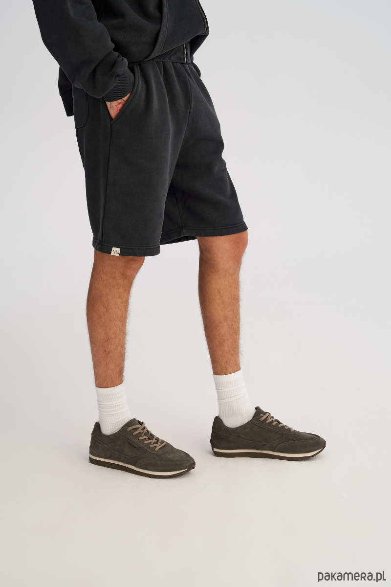 Szorty o swobodnym kroju z efektem lekkiego sprania, który nadaje materiałowi miękkości. Dzianina jest szczotkowana po wewnętrznej stronie, grubsza i zbita, ale dzięki procesowi prania nie jest sztywna, tylko przyjemnie układa się na sylwetce. Idealne na co dzień, do miasta i na luźne wyjazdy.