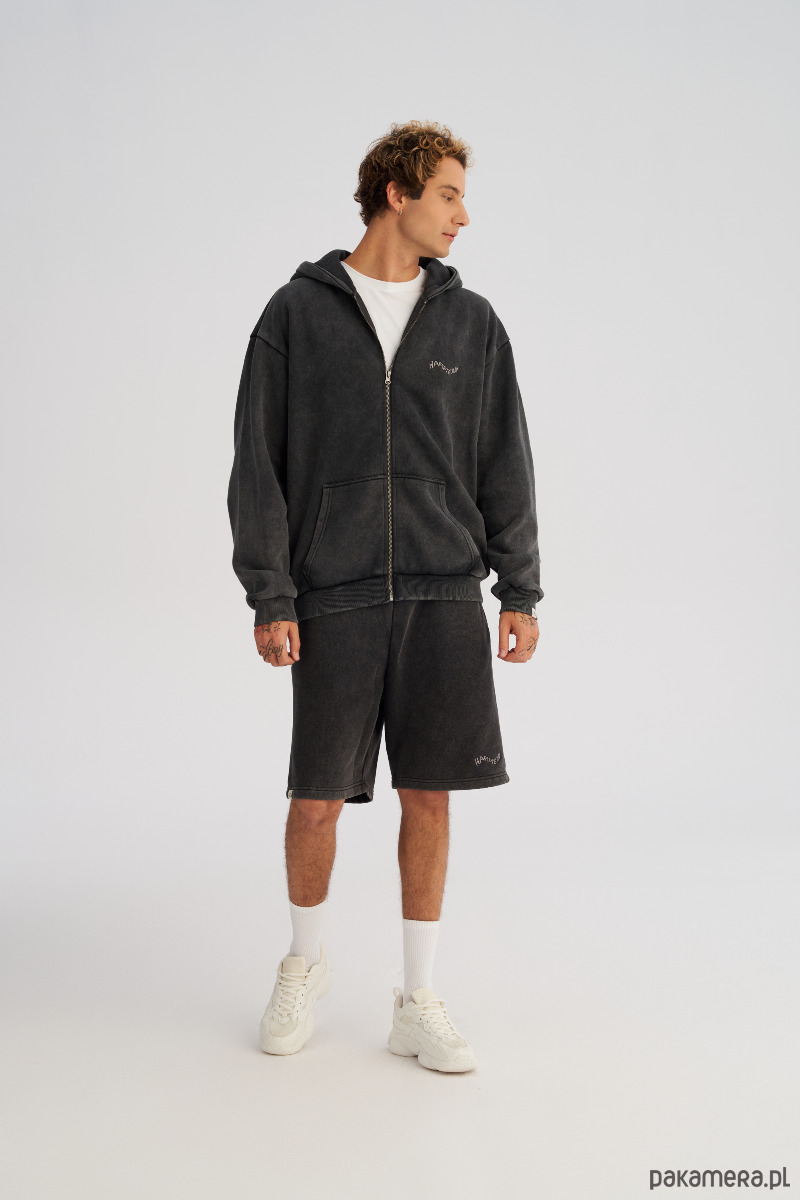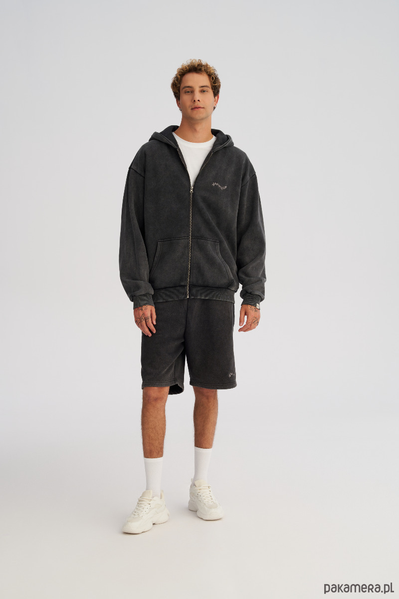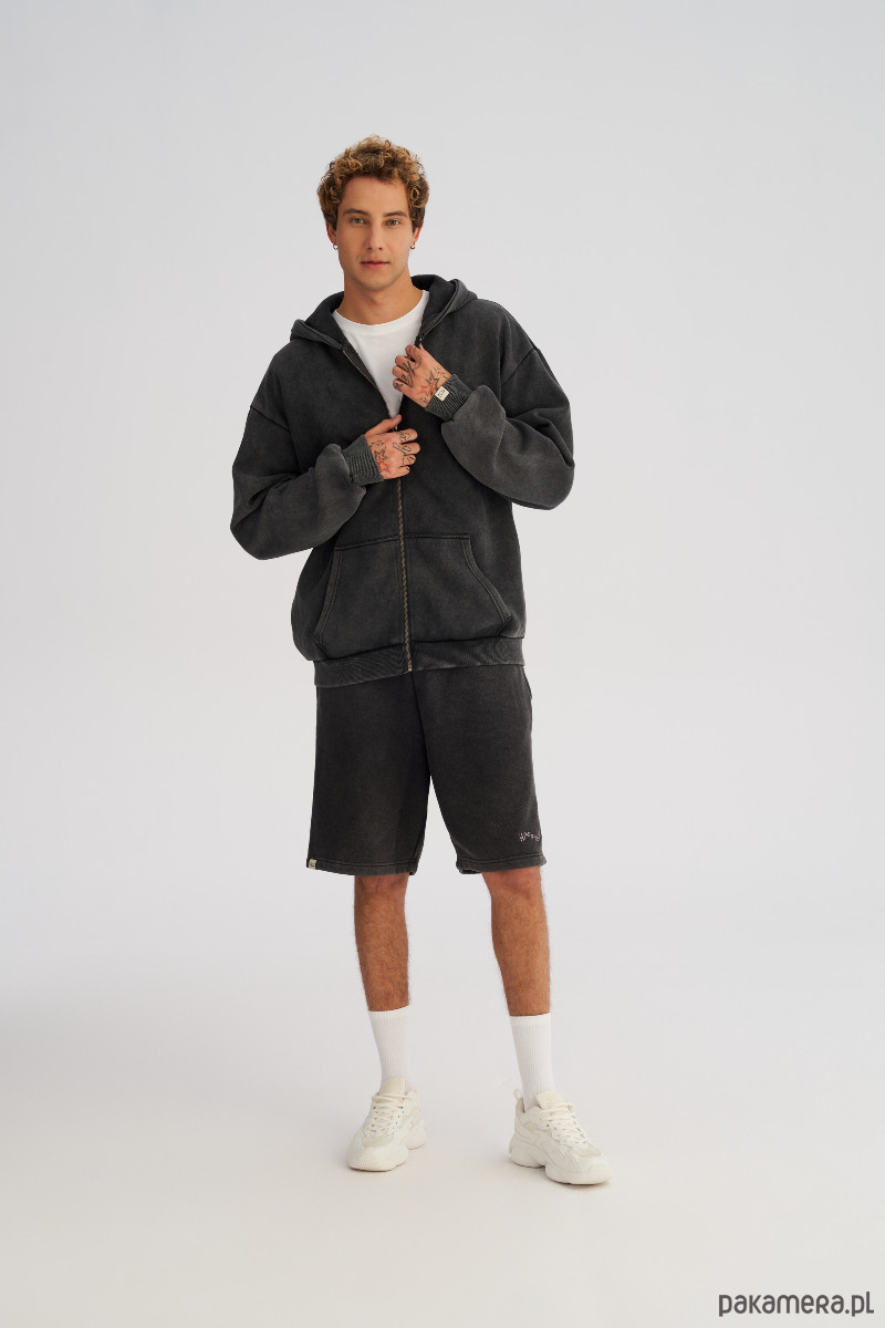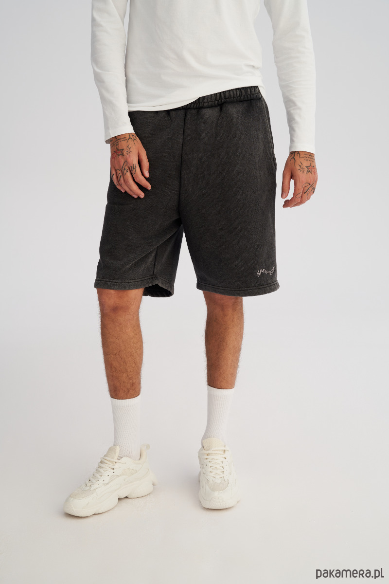Szorty o swobodnym kroju z efektem lekkiego sprania, który nadaje materiałowi miękkości. Dzianina jest szczotkowana po wewnętrznej stronie, grubsza i zbita, ale dzięki procesowi prania nie jest sztywna, tylko przyjemnie układa się na sylwetce. Idealne na co dzień, do miasta i na luźne wyjazdy.