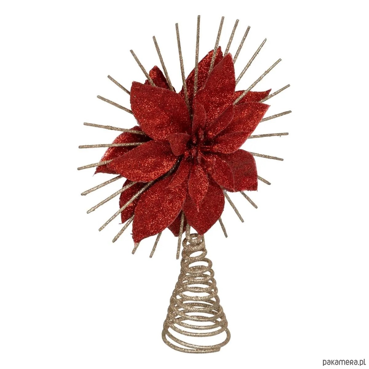 Szpic, czubek na choinkę, brokatowy, Poinsecja, 25 cm