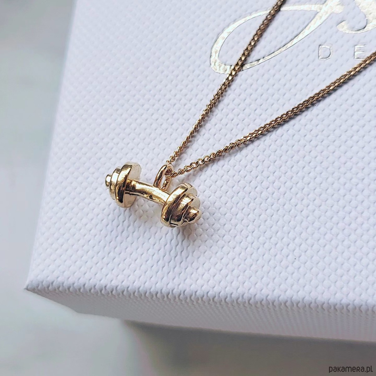 Zawieszka w kształcie sztangi została wykonana z dbałością o proporcje i detale, dzięki czemu wiernie oddaje formę prawdziwego sprzętu treningowego — w eleganckim, biżuteryjnym wydaniu.