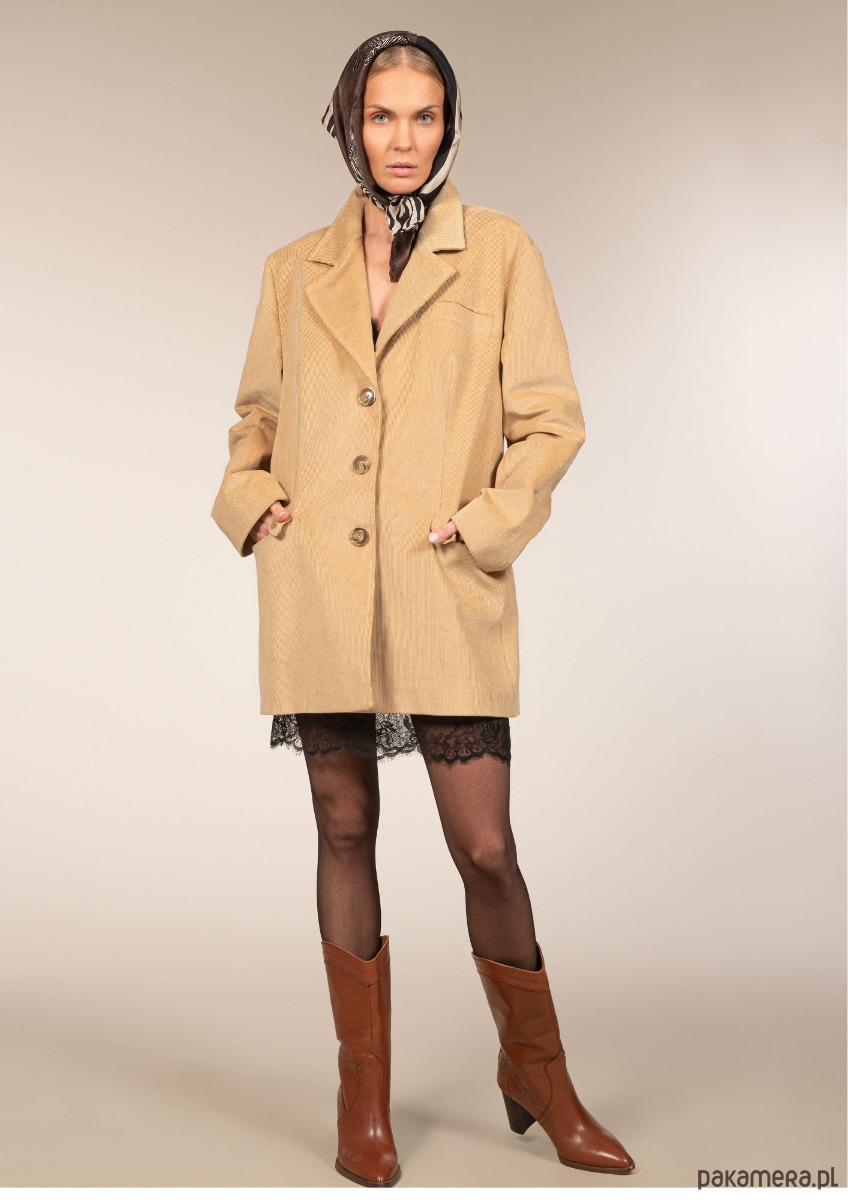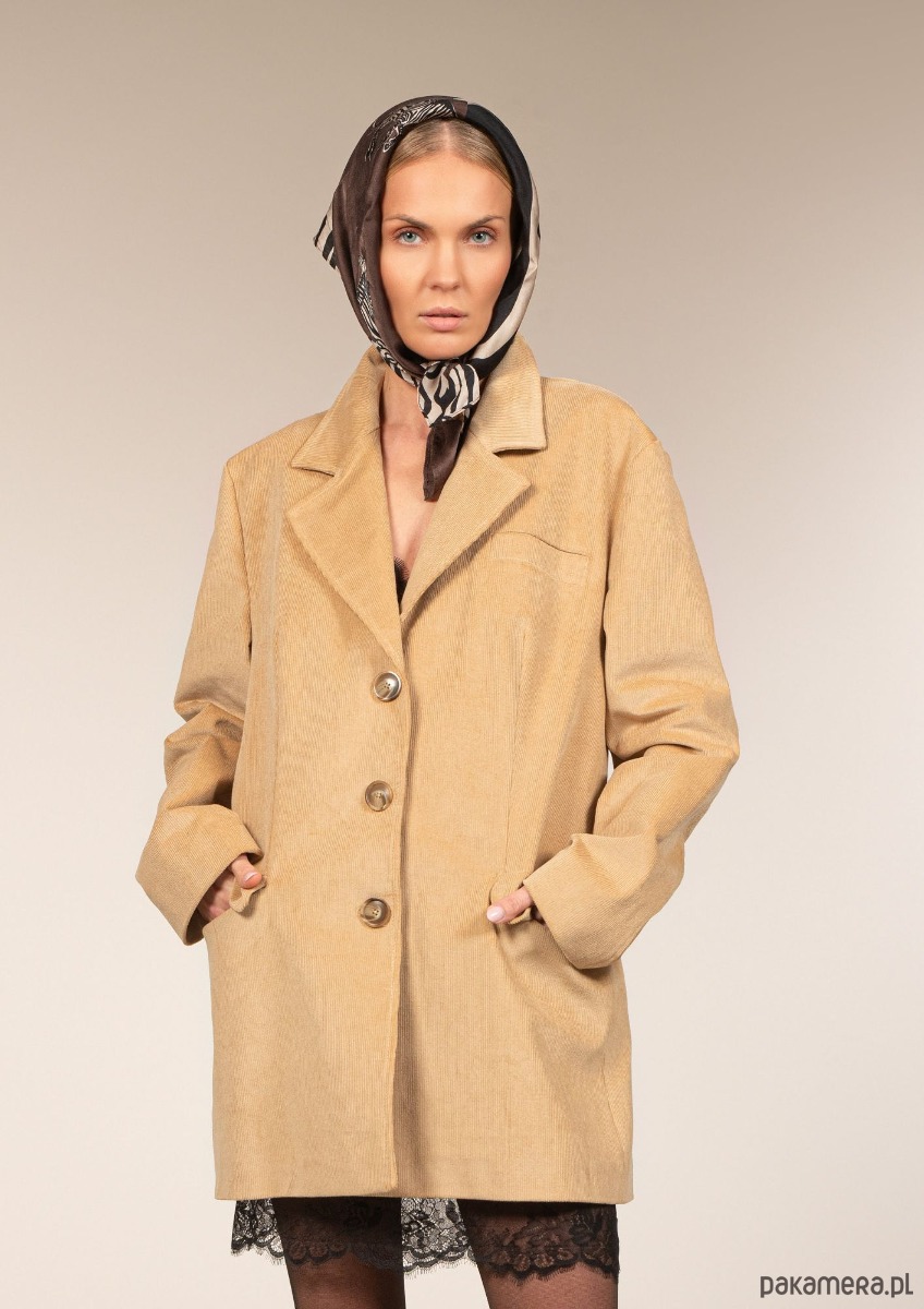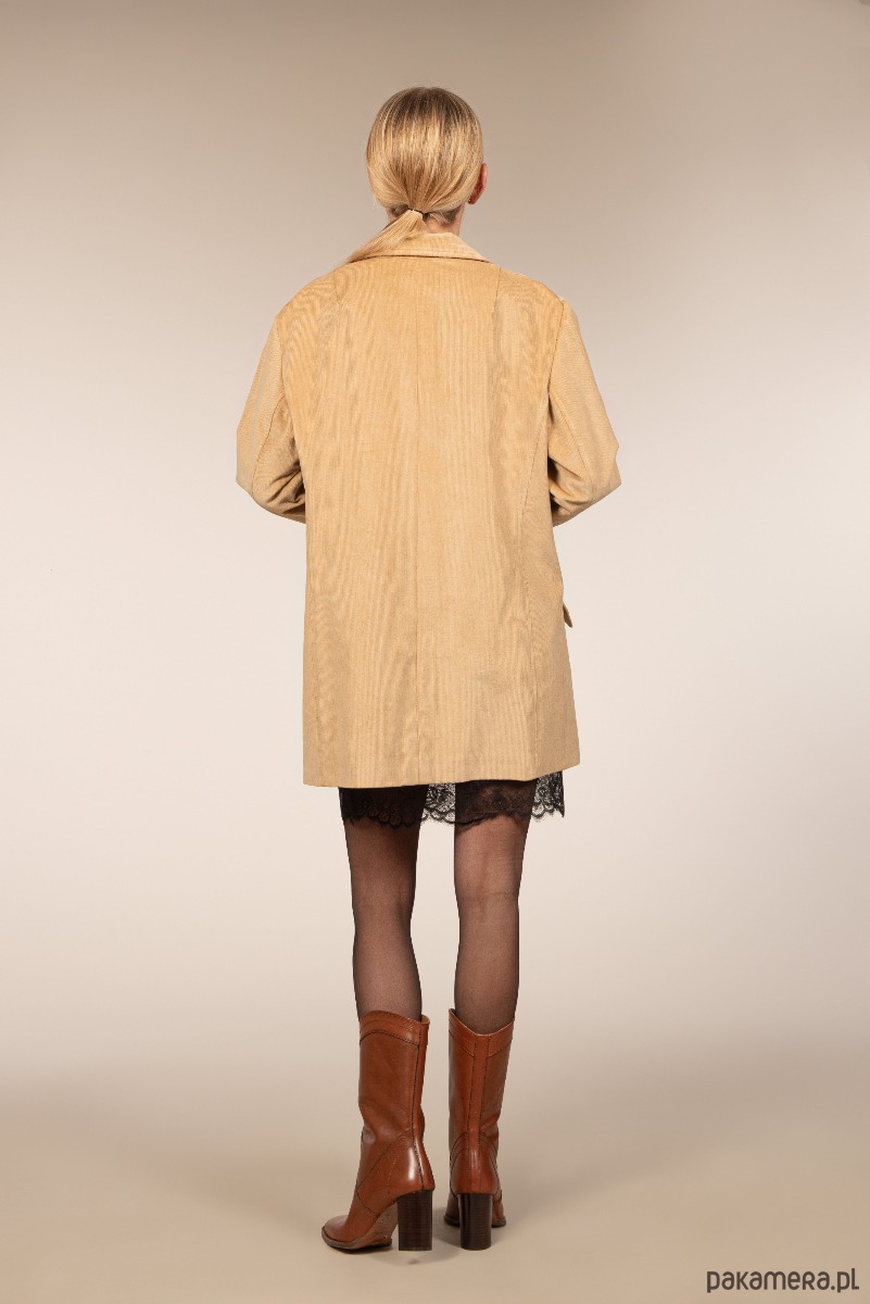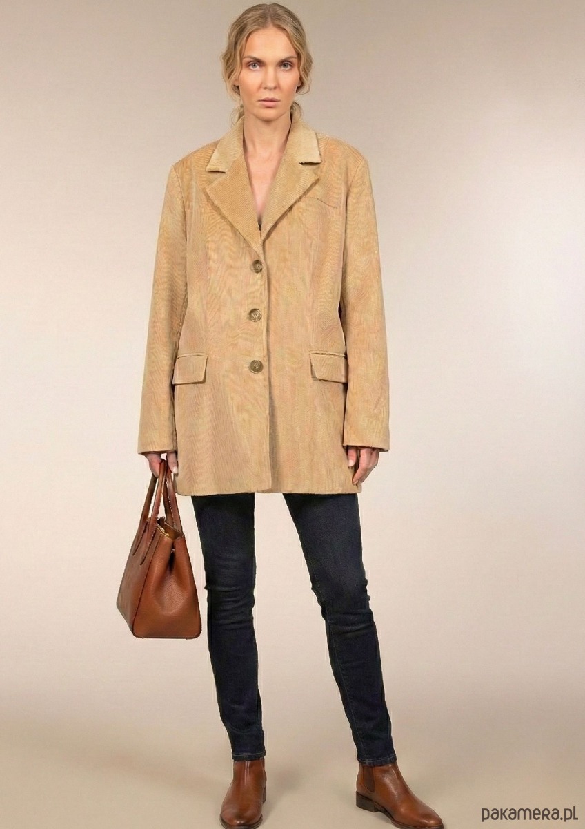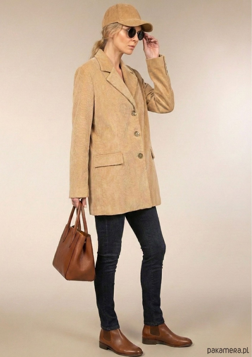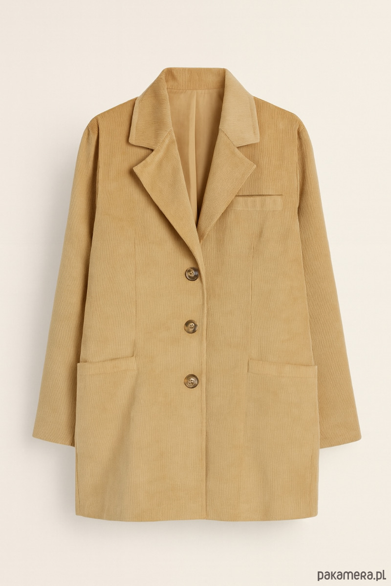 Sztruksowa marynarka w kolorze kamelowym to elegancki i wszechstronny element garderoby, który doskonale wpisuje się w modowe trendy.