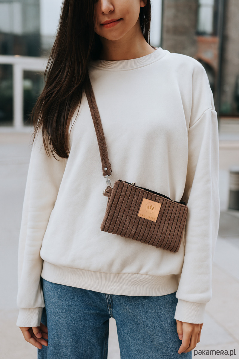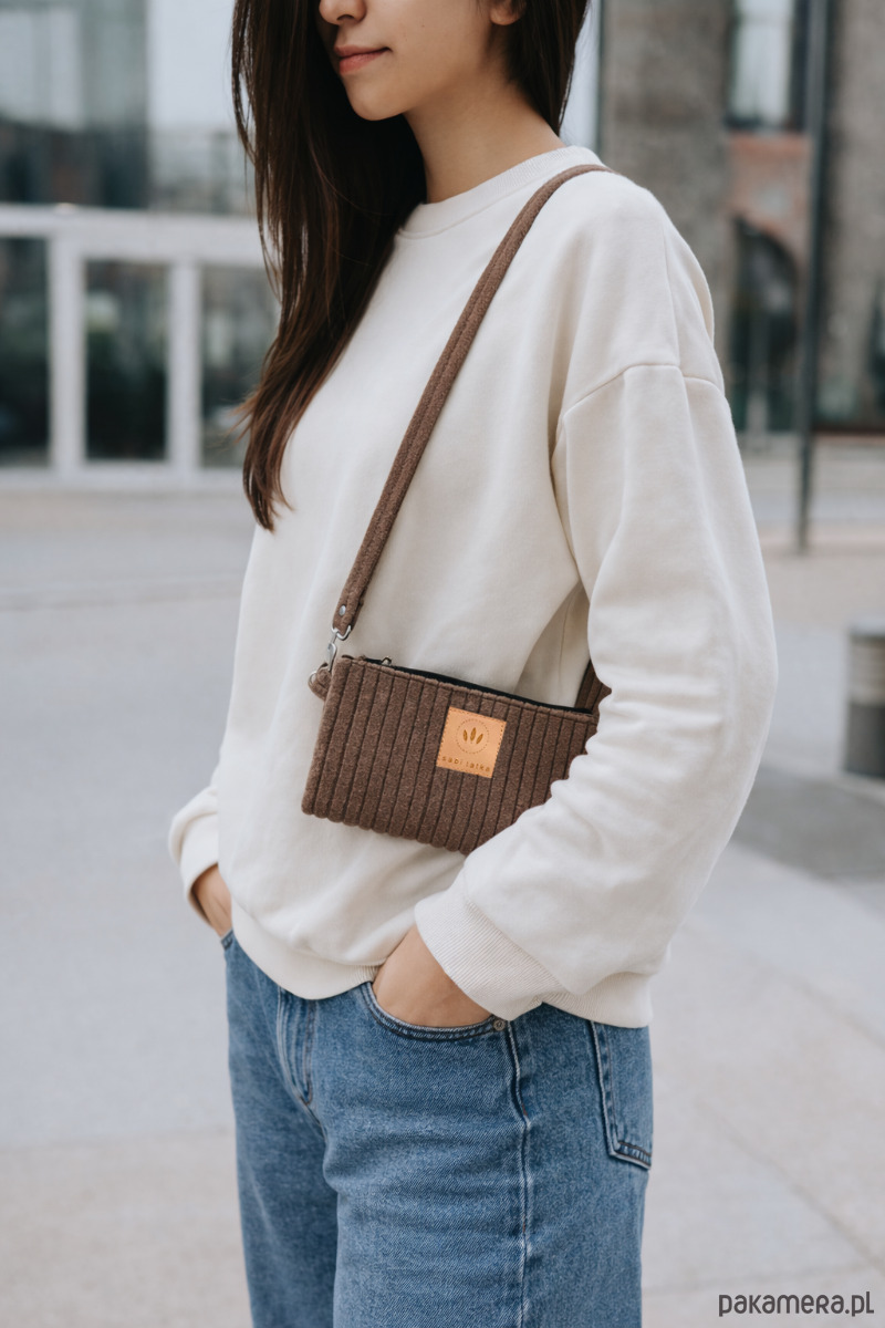 Funkcjonalną mini nerkę na telefon można nosić tradycyjnie na biodrze lub na skos.