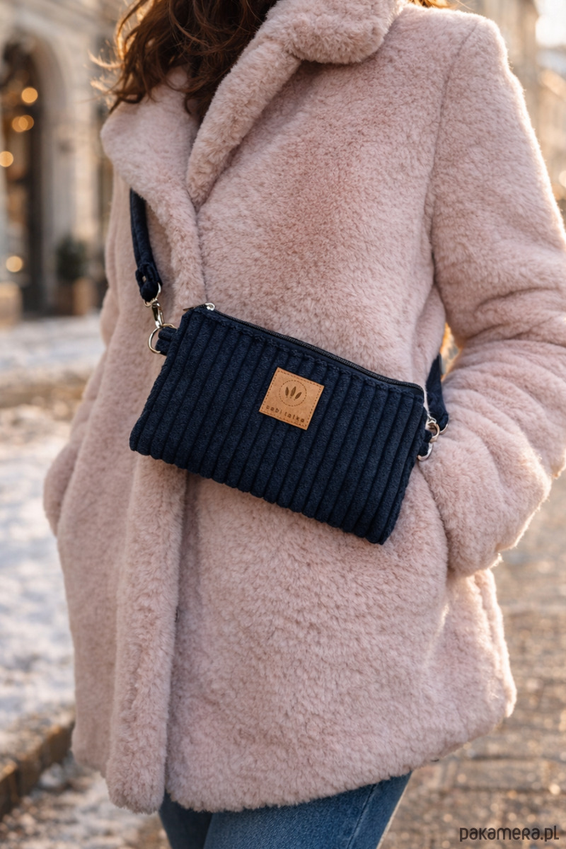 Sztruksowa mini nerka saszetka Czarna