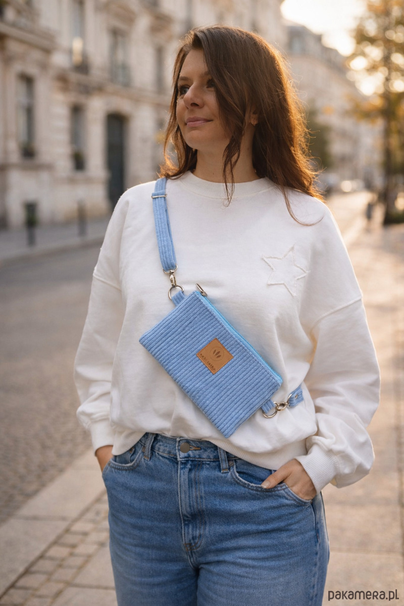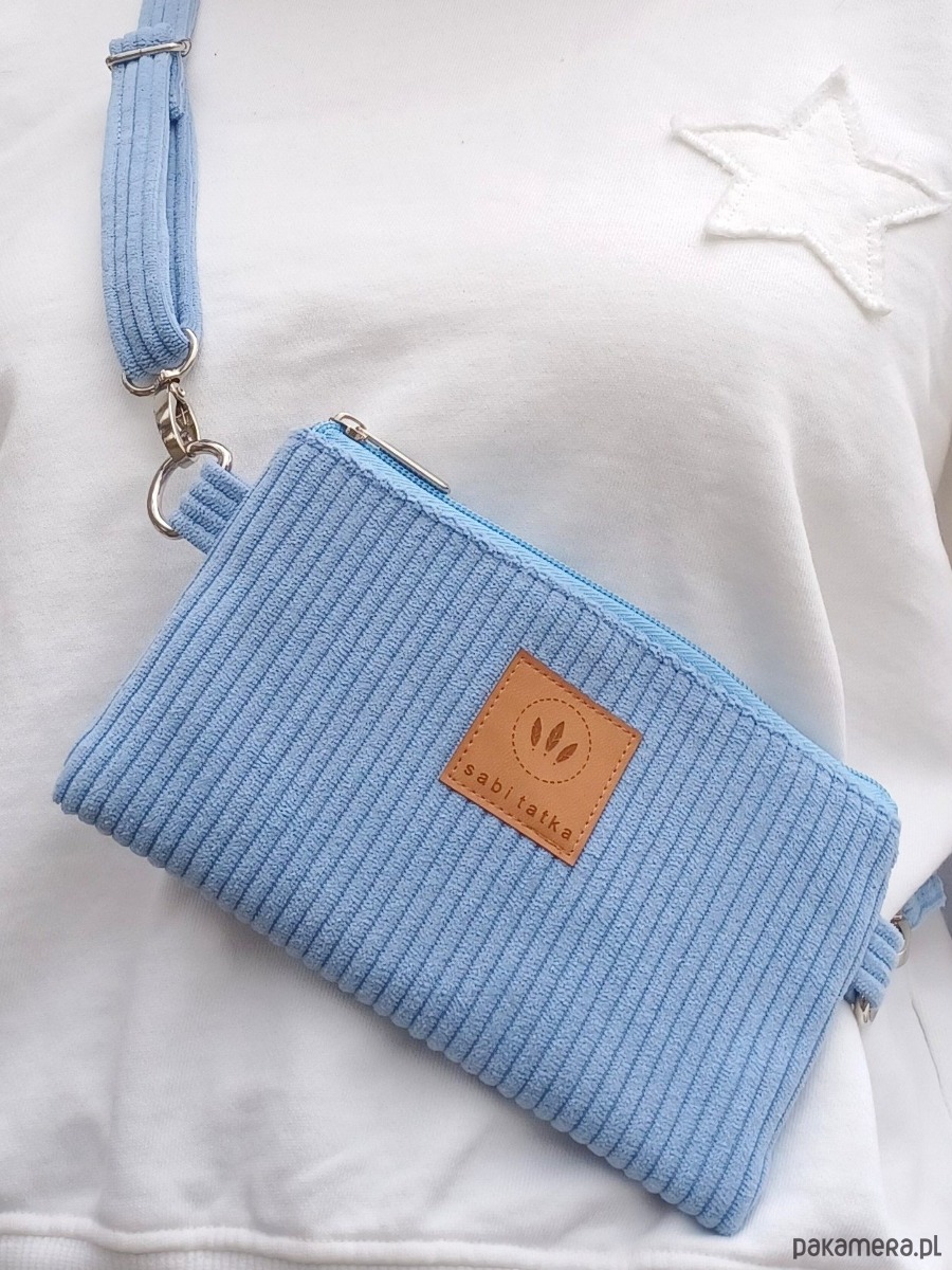 Funkcjonalną mini nerkę na telefon można nosić tradycyjnie na biodrze lub na skos.