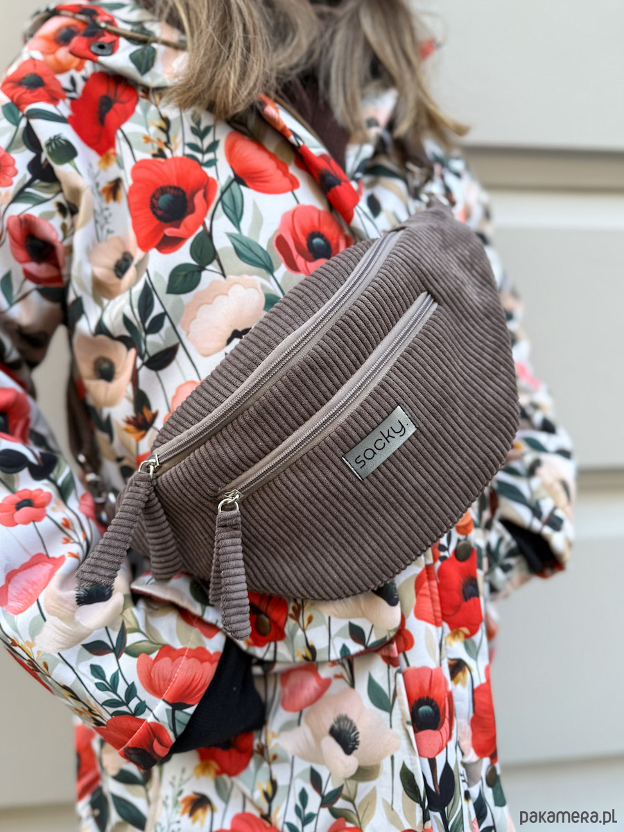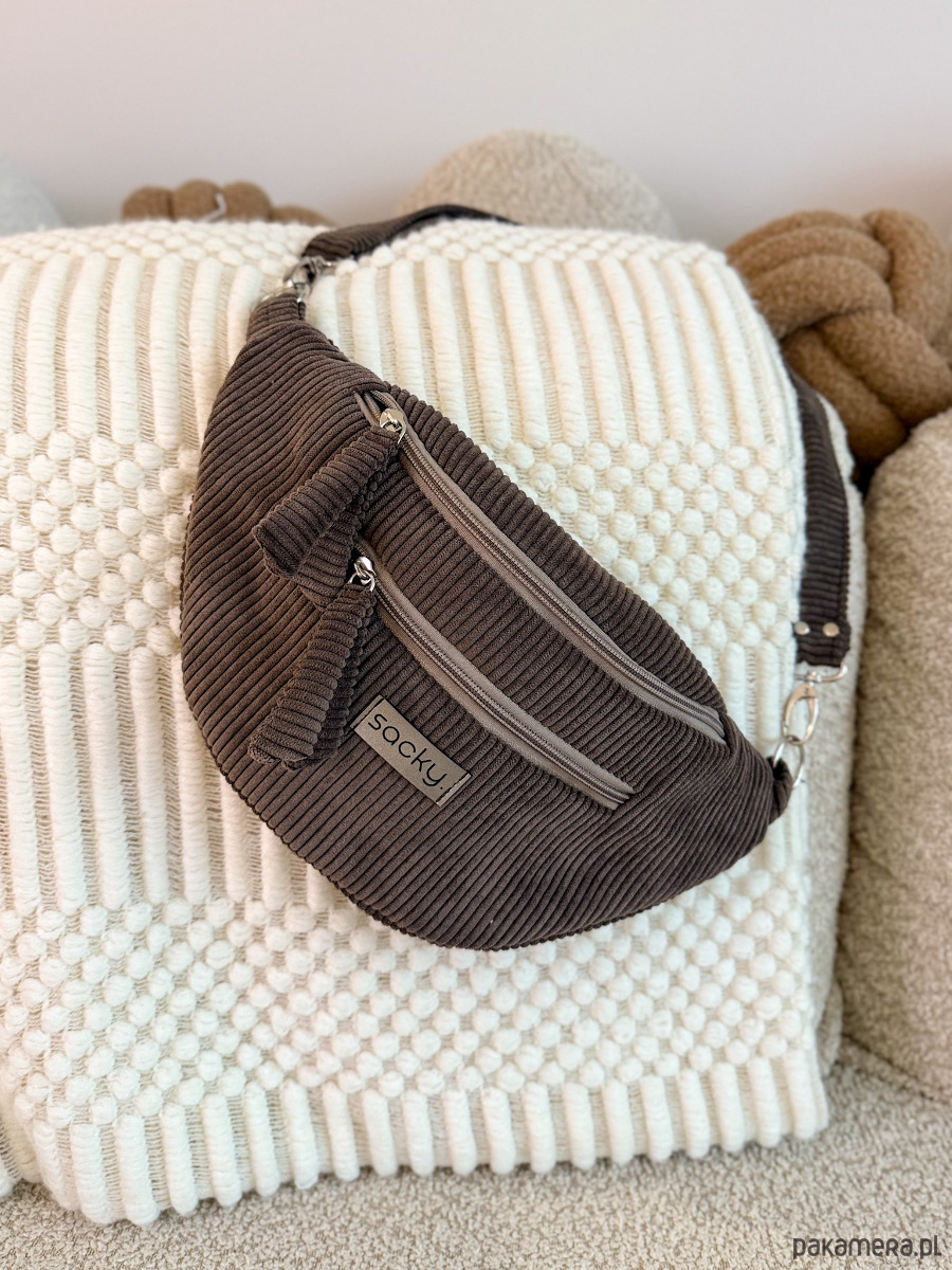 Sztruksowa nerka fall czekolada to nasza jesienno zimowa propozycja. Nerka na przodzie poza główną komorę ma kieszonkę na zamek wykończoną ozdobnym frędzelkiem. Dodatkowo na tyle nerki znajduje się kieszonka na zamek. Pasek jest regulowany oraz odpinany, dzięki czemu możesz modyfikować wygląd swojej nerki i zmieniać paski dowolnie. W środku saszetka ma wodoodporną podszewkę, kieszonkę na zamek oraz karabinek na klucze.