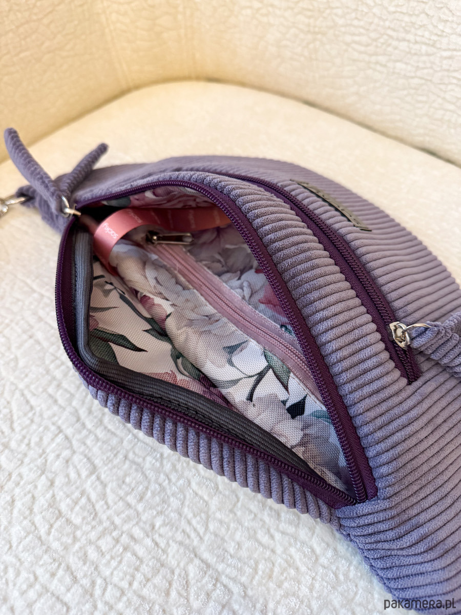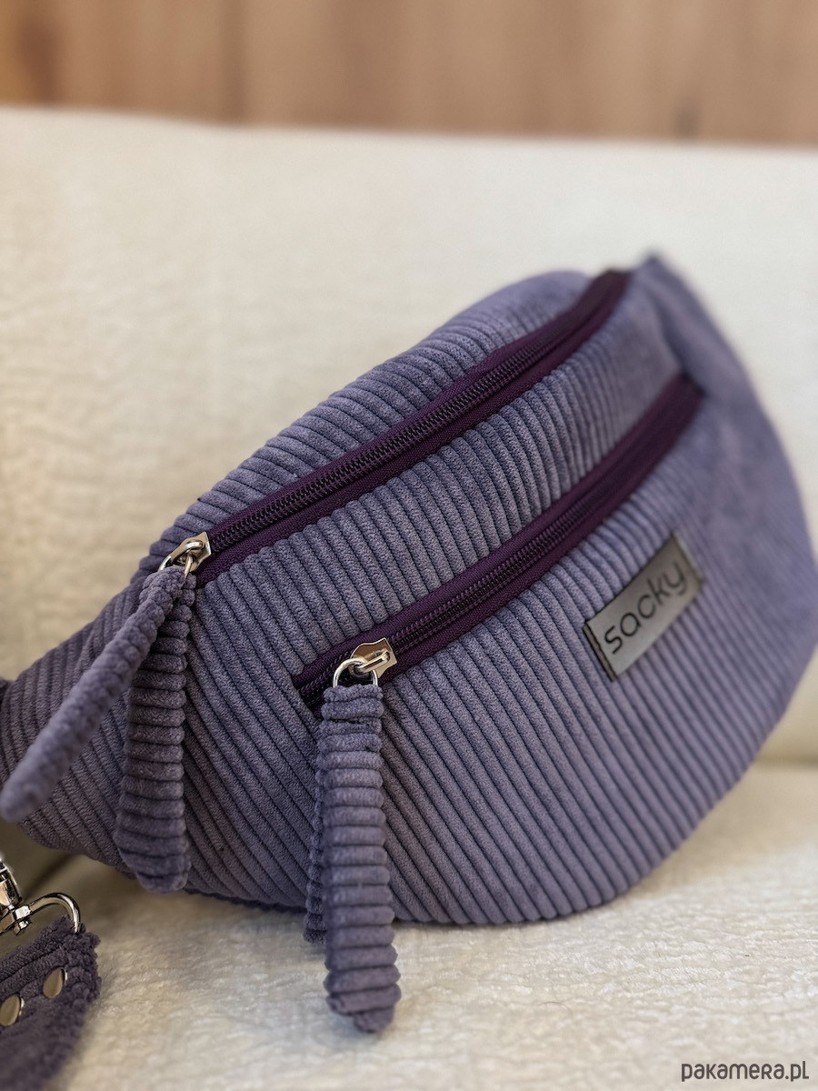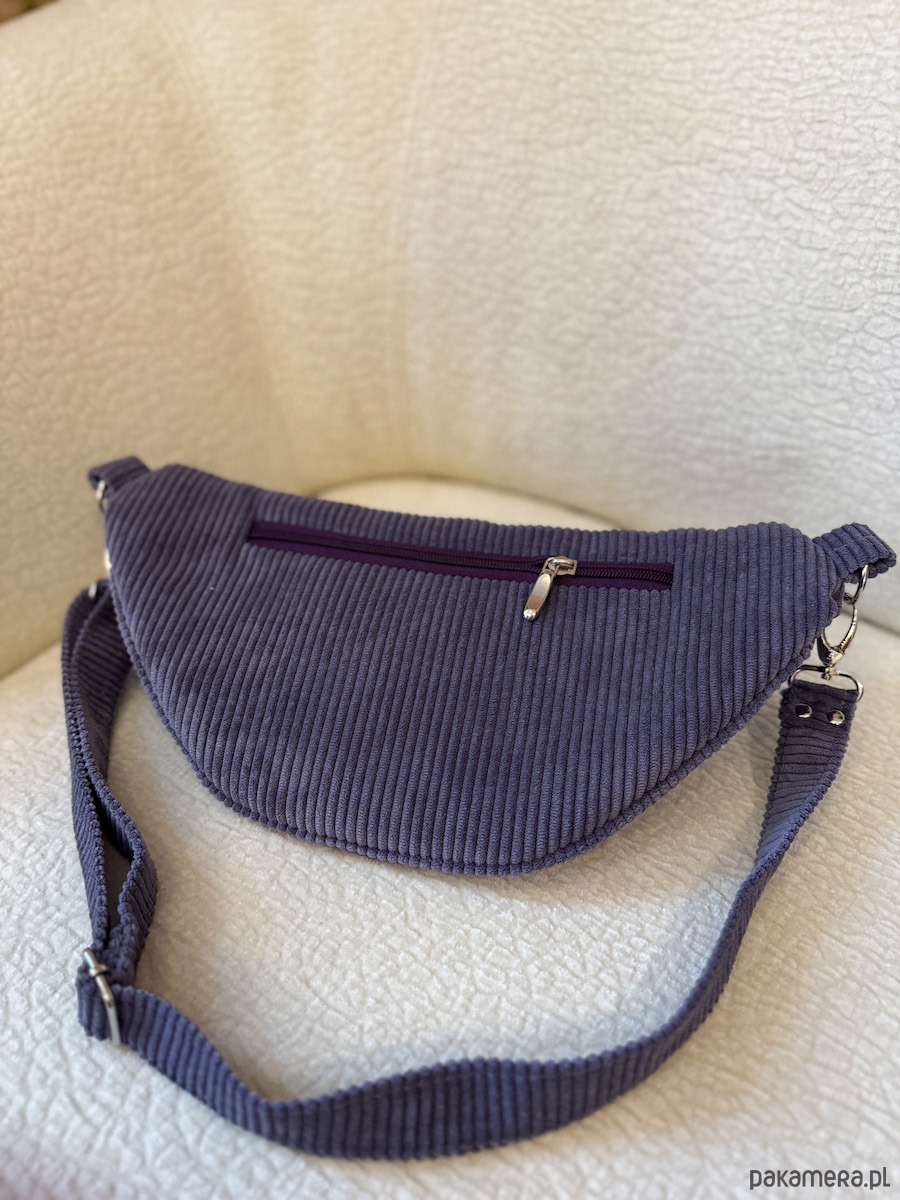 Sztruksowa nerka fall fiolet to nasza jesienno zimowa propozycja. Nerka na przodzie poza główną komorę ma kieszonkę na zamek wykończoną ozdobnym frędzelkiem. Dodatkowo na tyle nerki znajduje się kieszonka na zamek. Pasek jest regulowany oraz odpinany, dzięki czemu możesz modyfikować wygląd swojej nerki i zmieniać paski dowolnie. W środku saszetka ma wodoodporną podszewkę, kieszonkę na zamek oraz karabinek na klucze.