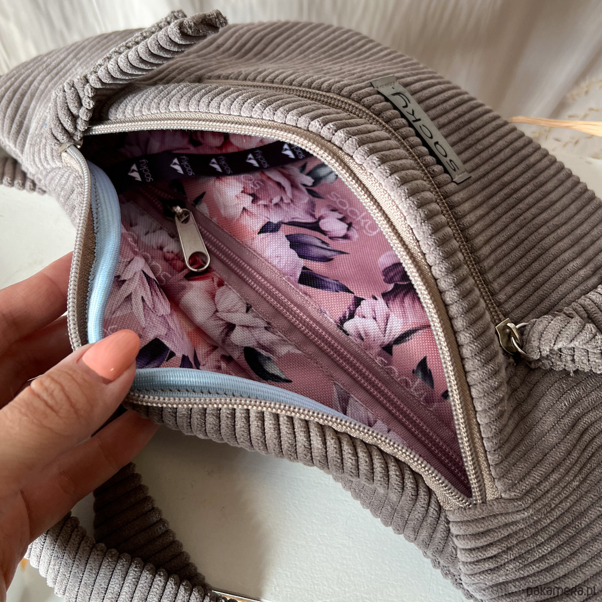 Sztruksowa nerka fall latte to nasza jesienno zimowa propozycja. Nerka na przodzie poza główną komorę ma kieszonkę na zamek wykończoną ozdobnym frędzelkiem. Dodatkowo na tyle nerki znajduje się kieszonka na zamek. Pasek jest regulowany oraz odpinany, dzięki czemu możesz modyfikować wygląd swojej nerki i zmieniać paski dowolnie. W środku saszetka ma wodoodporną podszewkę, kieszonkę na zamek oraz karabinek na klucze.