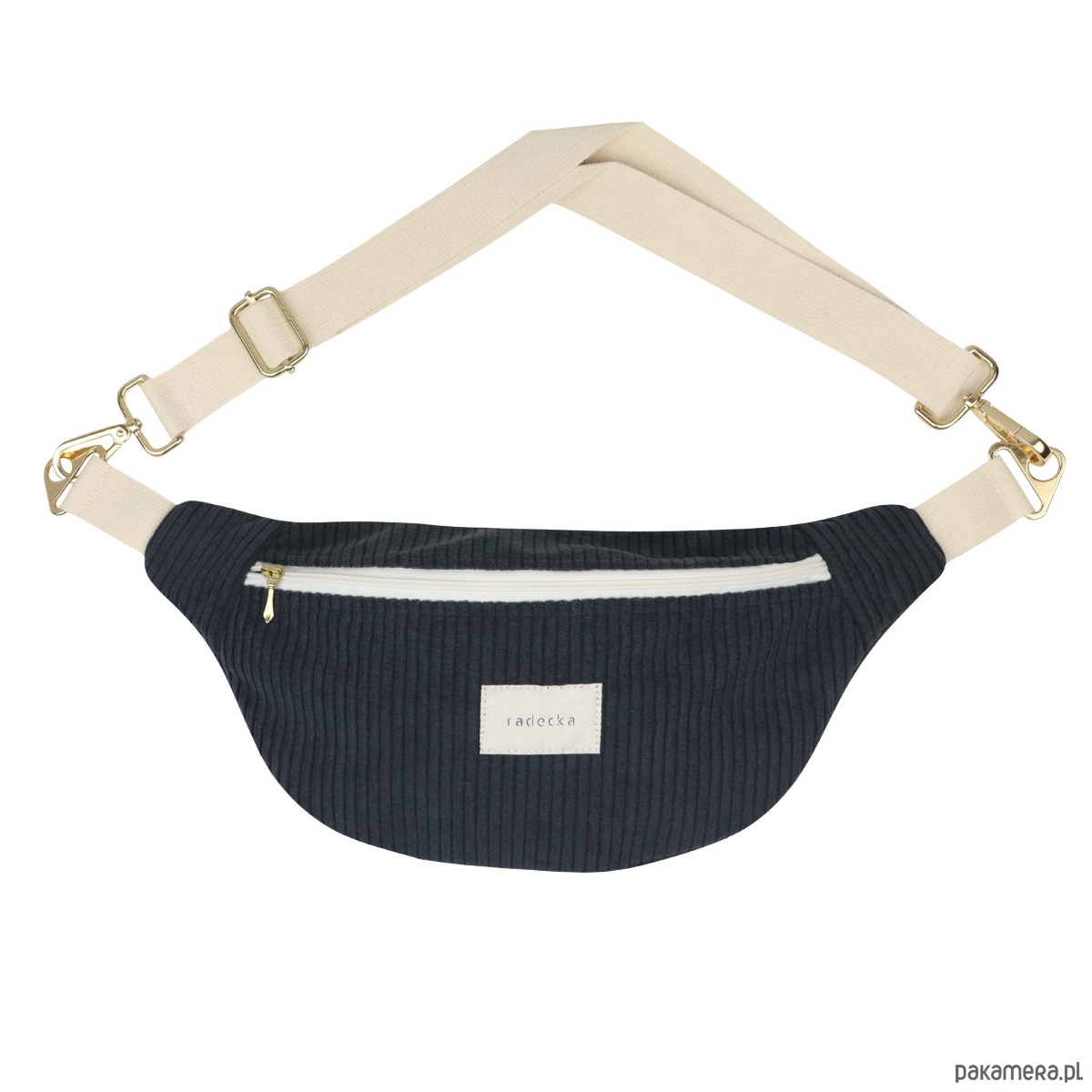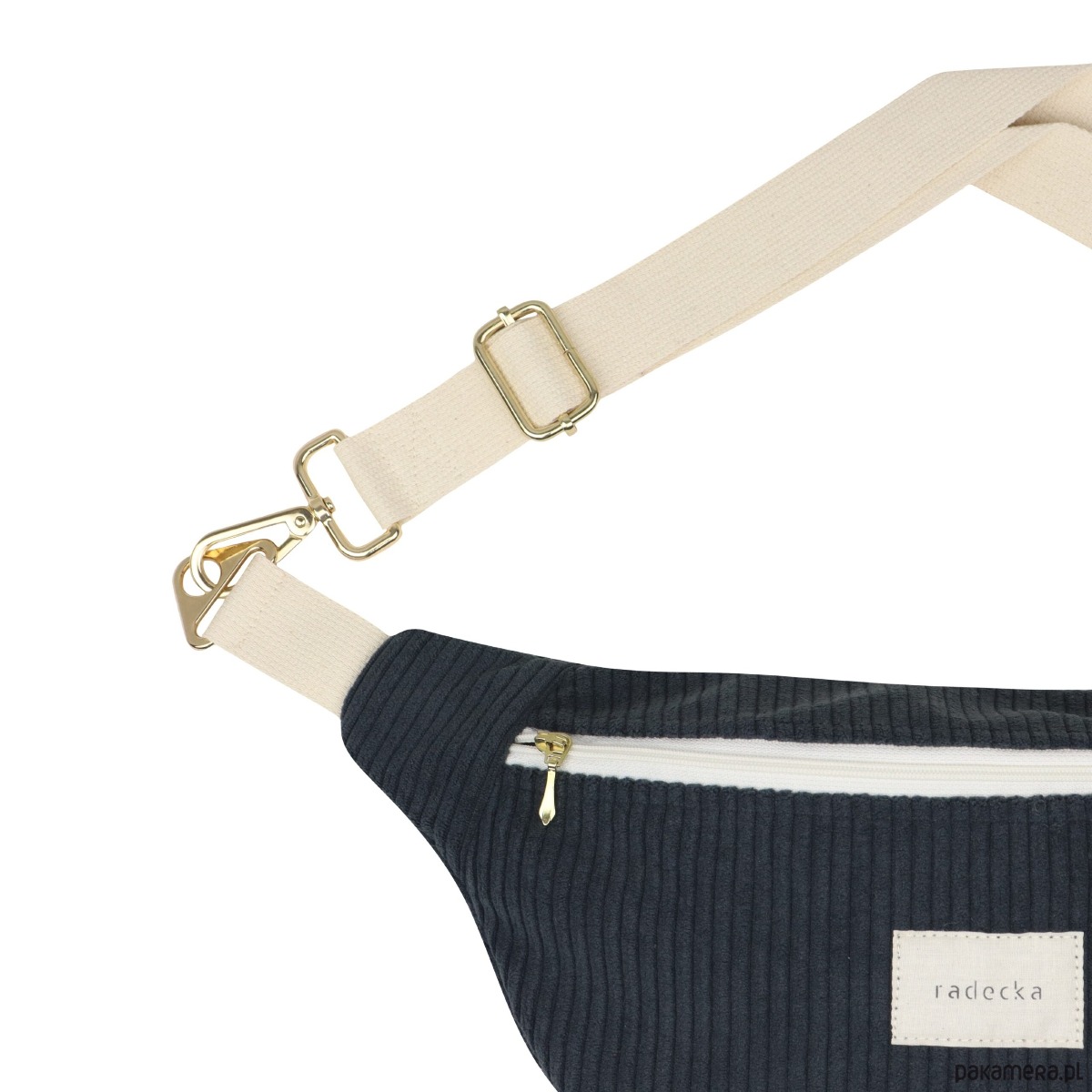 Zamek: Zamek na ecru taśmie zakończony złotym suwakiem, który zapewnia bezpieczeństwo i łatwy dostęp do zawartości. Kształt suwaków może nieznacznie różnić się od przedstawionych na zdjęciu poglądowym.