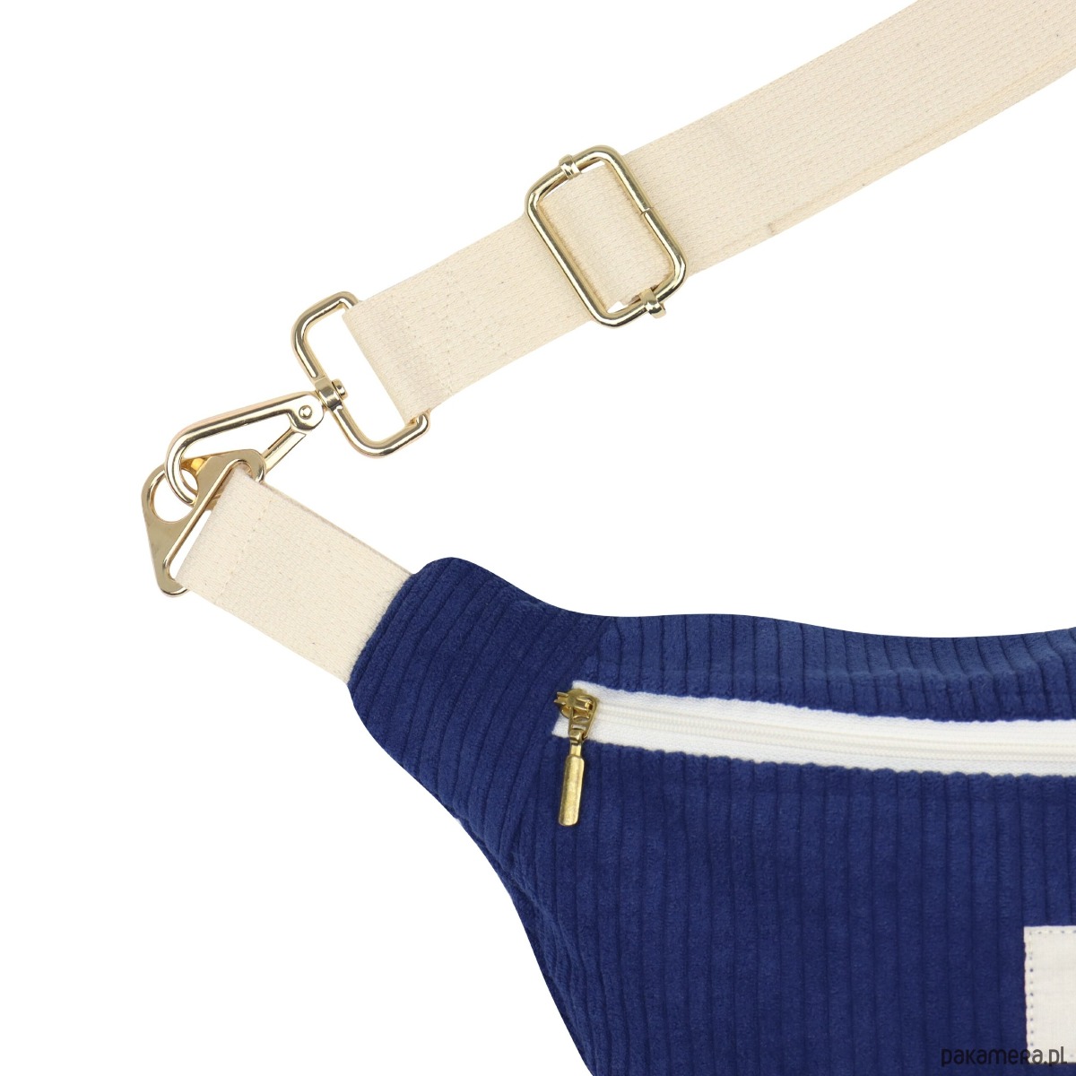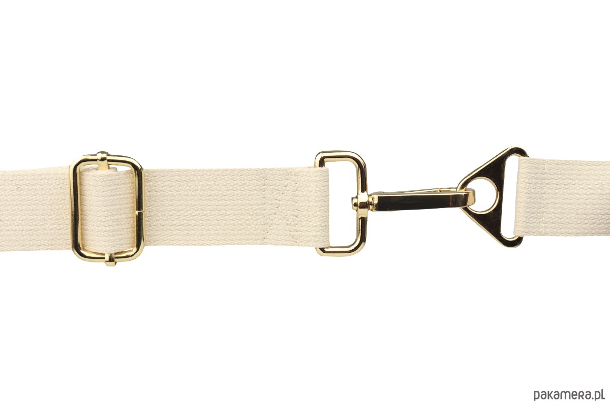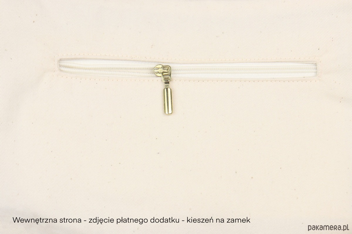 Zamek: Zamek na ecru taśmie zakończony złotym suwakiem, który zapewnia bezpieczeństwo i łatwy dostęp do zawartości. Kształt suwaków może nieznacznie różnić się od przedstawionych na zdjęciu poglądowym.