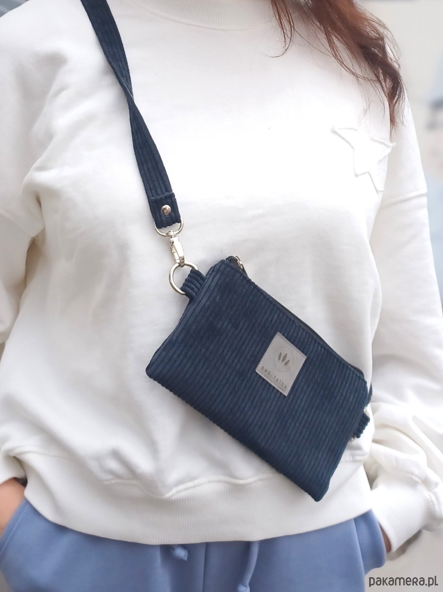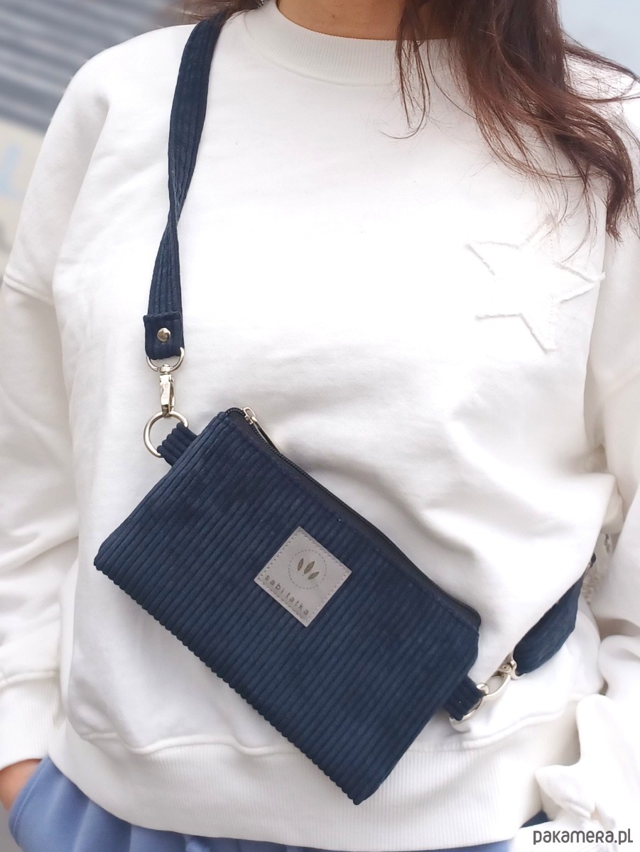 Funkcjonalną mini nerkę na telefon można nosić tradycyjnie na biodrze lub na skos.