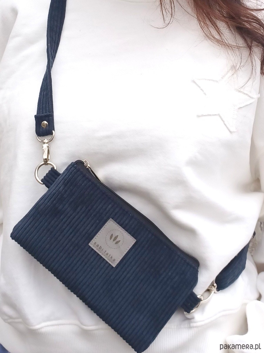 Sztruksowa saszetka na telefon Czarna drobny prążek