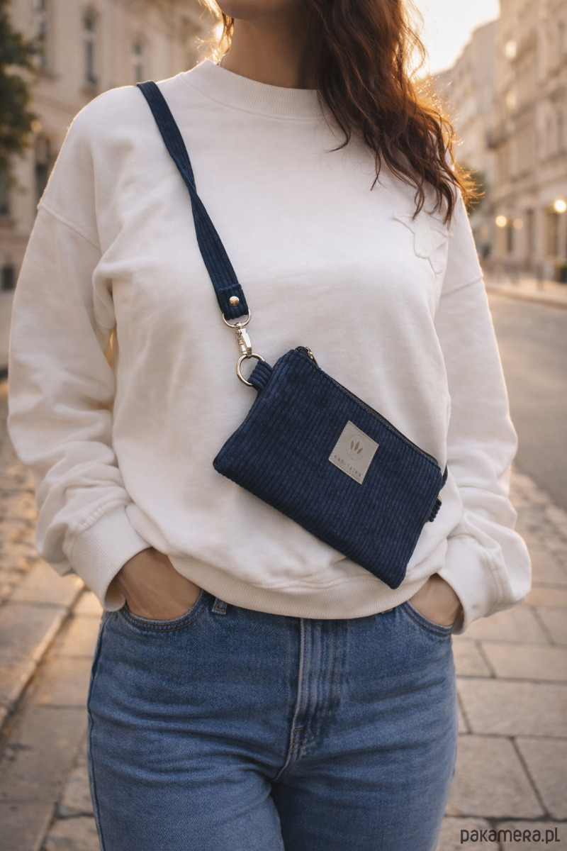 Funkcjonalną mini nerkę na telefon można nosić tradycyjnie na biodrze lub na skos.