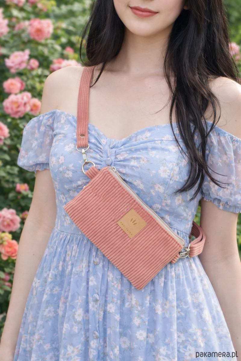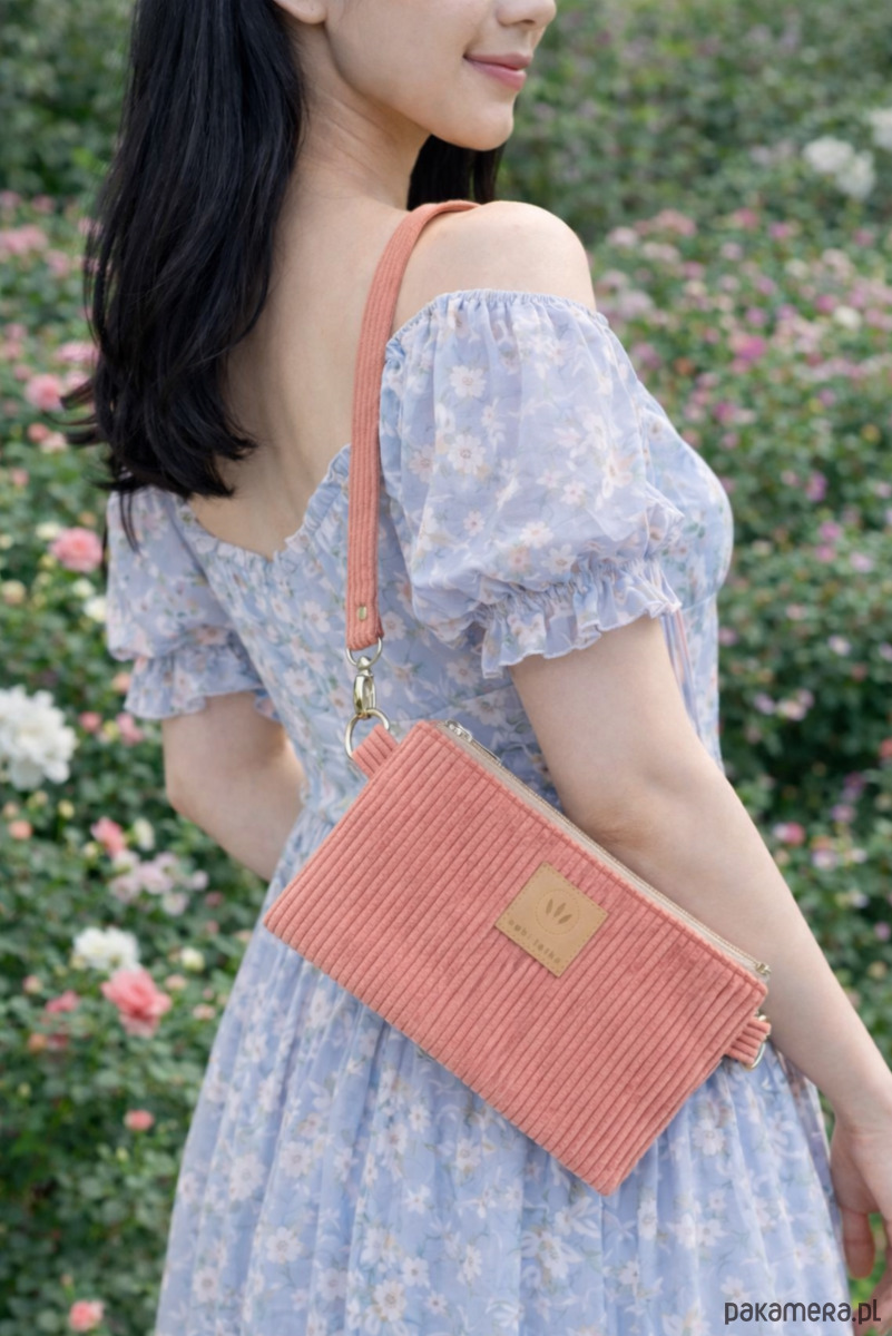 Sztruksowa saszetka na telefon Koralowa