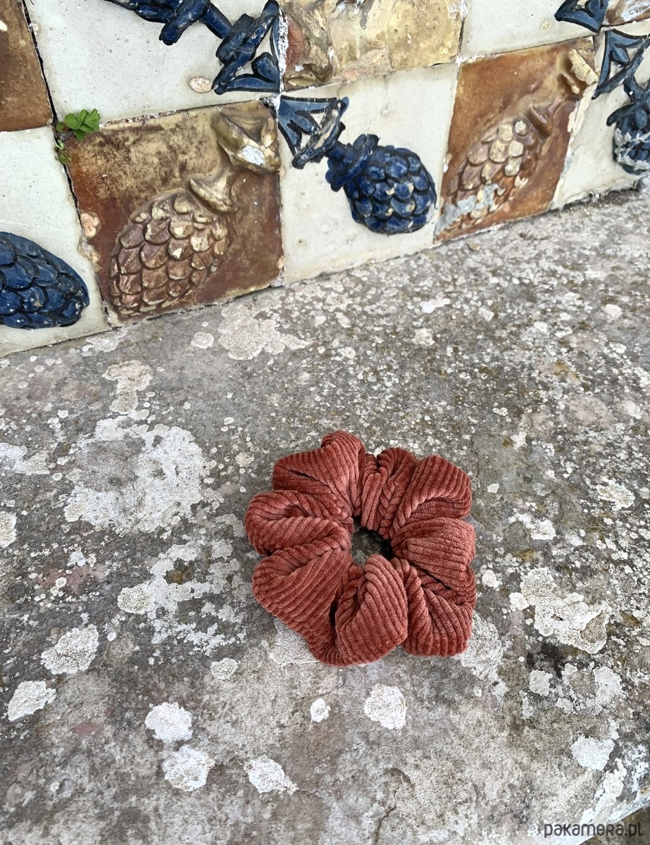 Sztruksowa scrunchie Copper to efektowny dodatek do włosów, który dopełni Twoją stylizację w wyjątkowy sposób, łącząc komfort i styl.
