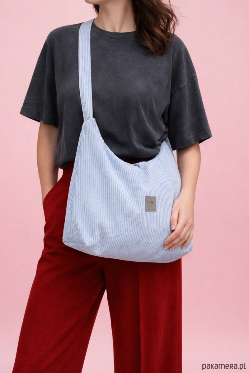 Wykonana z przyjemnego w dotyku sztruksu, zachwyca subtelną fakturą i nowoczesnym, minimalistycznym designem. Komfortowy, szeroki pasek zapewnia wygodę noszenia na co dzień, a pojemne wnętrze bez trudu pomieści najpotrzebniejsze rzeczy.