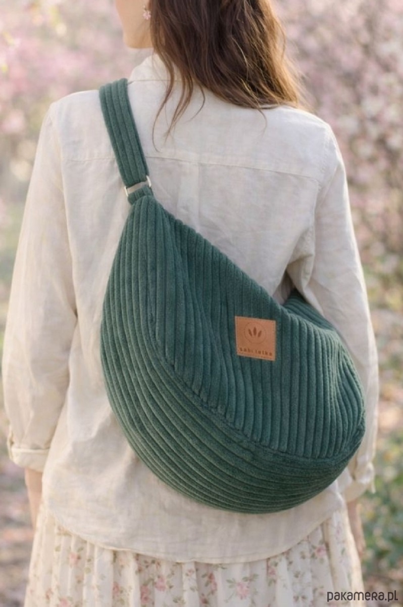 Sztruksowa torba hobo Zielona