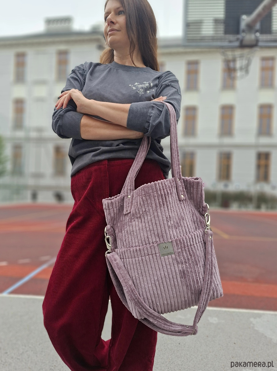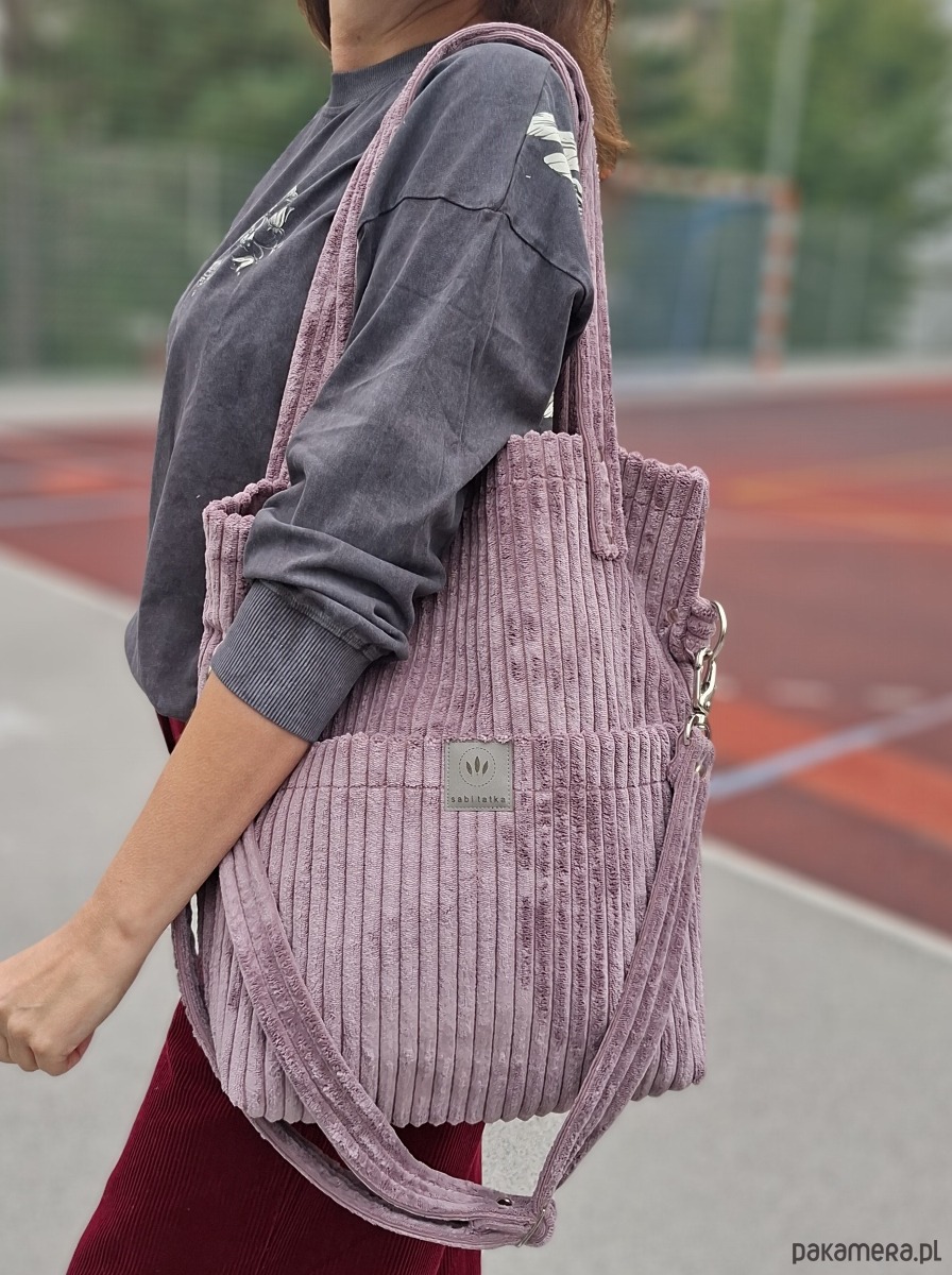Sztruksowa torebka z kieszeniami Wrzosowa