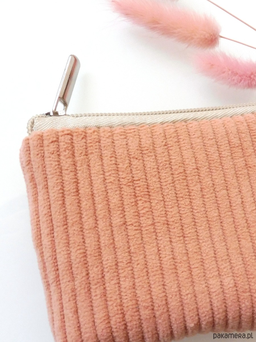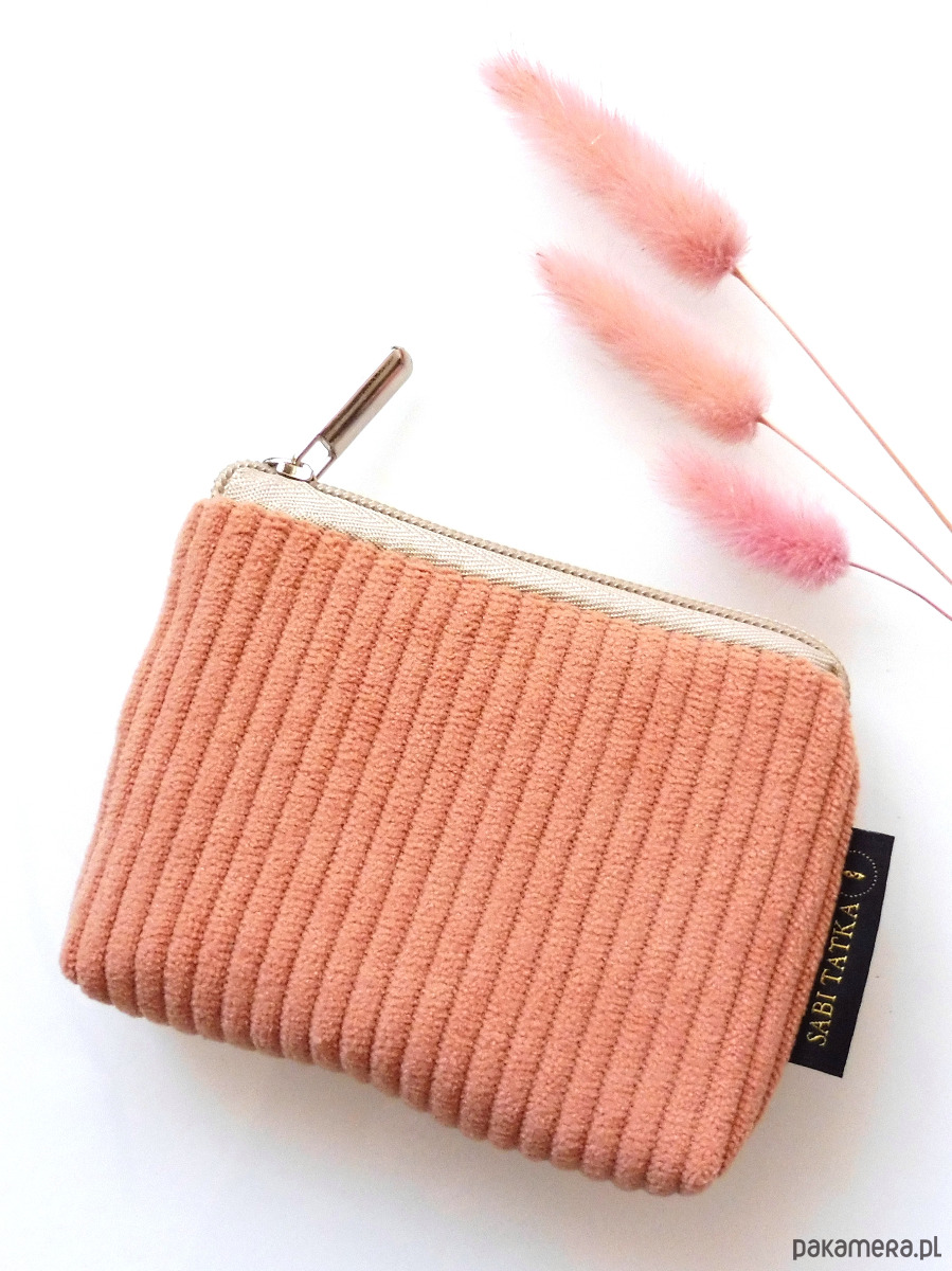 Sztruksowy portfelik card holder Brzoskwiniowy