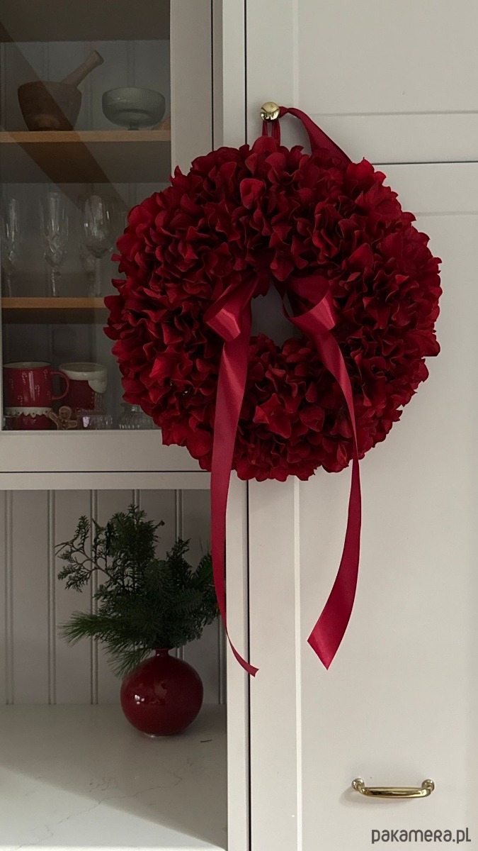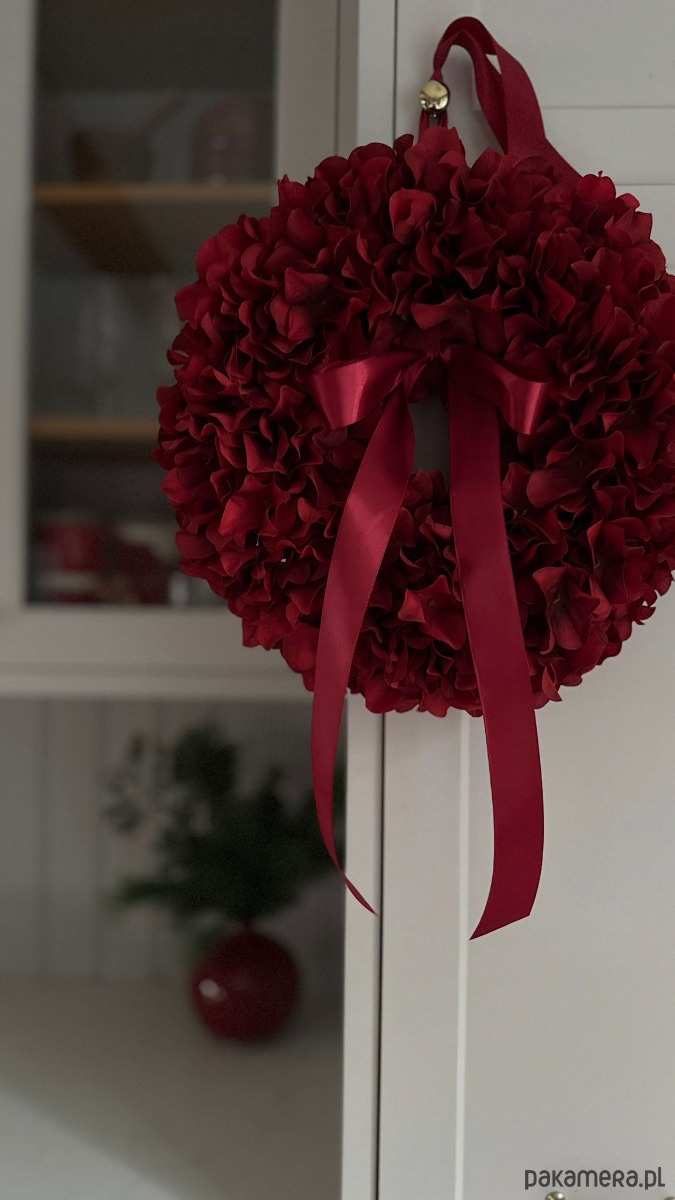 Jest lekki, a jednocześnie obfity, pięknie się prezentuje na drzwiach zewnętrznych, kominku lub po prostu na ścianie.