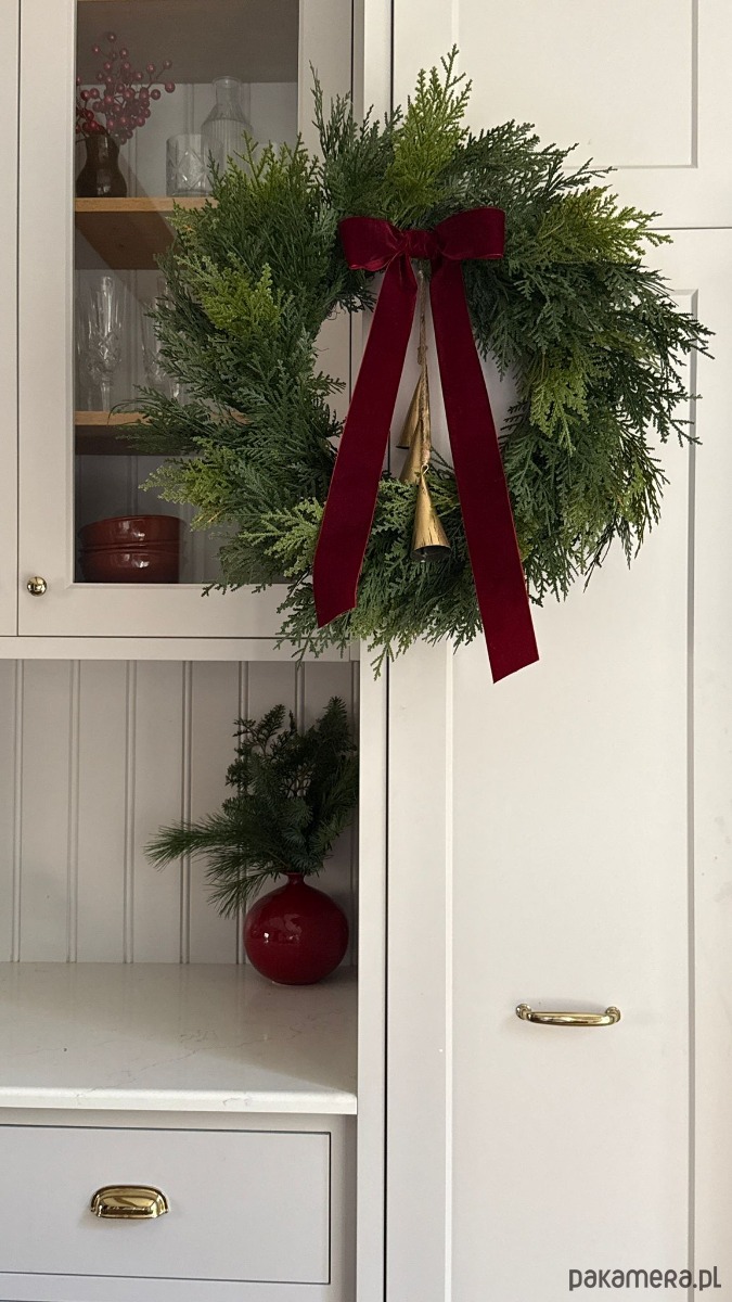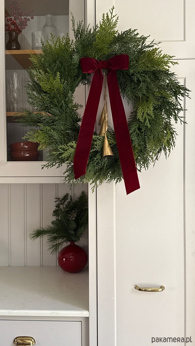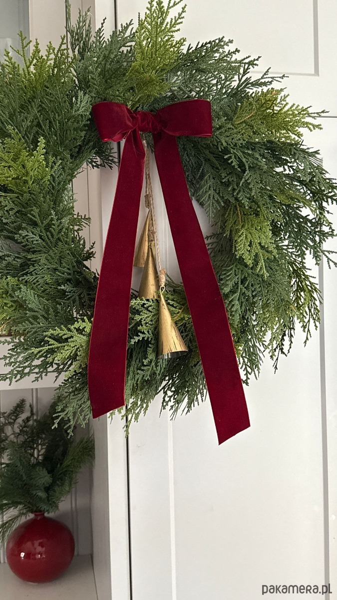 Wianek jest sztuczny wykonany ze sztucznej tui, prezentującej się bardzo naturalnie z dodatkiem 3 dzwoneczków 🔔i pięknej, grubej aksamitnej kokardy ♥️
